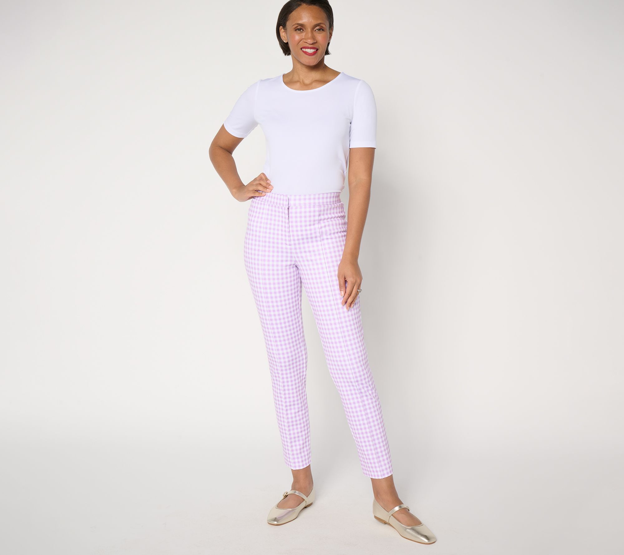 Whether you're heading to the office or a weekend brunch, these sleek slim-leg printed trousers in Smart Ponte offer a blend of comfort and style for all occasions. From Tailored by Susan Graver.