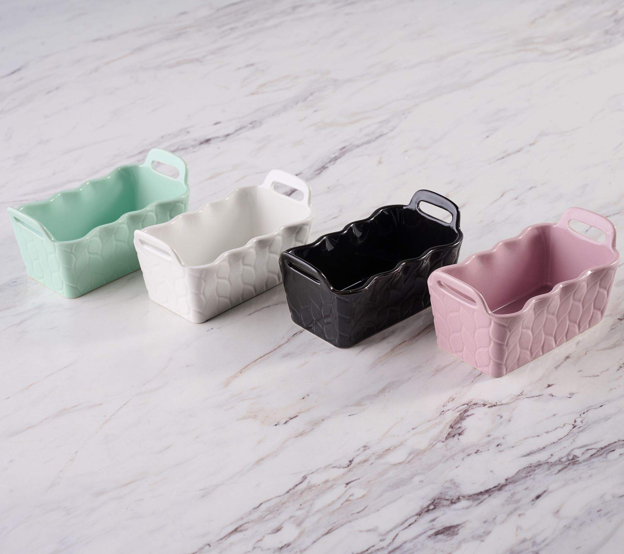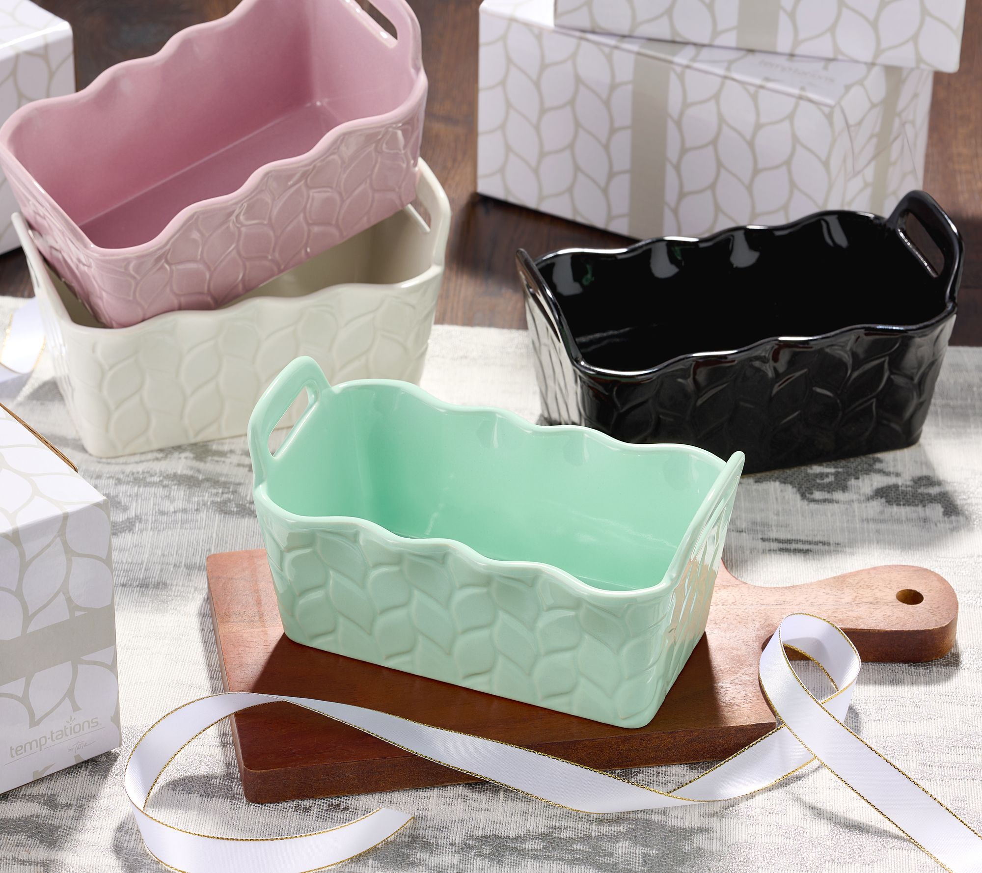Mini treats make a mighty impression! Bake and take banana bread, pumpkin loaf, lemon pound cake, or mini monkey bread to loved ones, teachers, neighbors, or anyone in your life that deserves something delicious and homemade (use a box mix -- we won't tell!). These mini ceramic loaf pans make heartfelt gifting so easy. From Temp-tations® Ovenware.