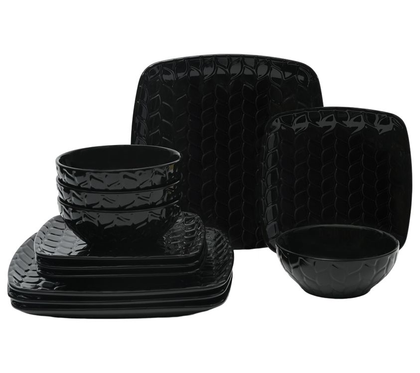 "As Is" Temp-tations Carved Willow 12-piece Square Dinnerware Set
