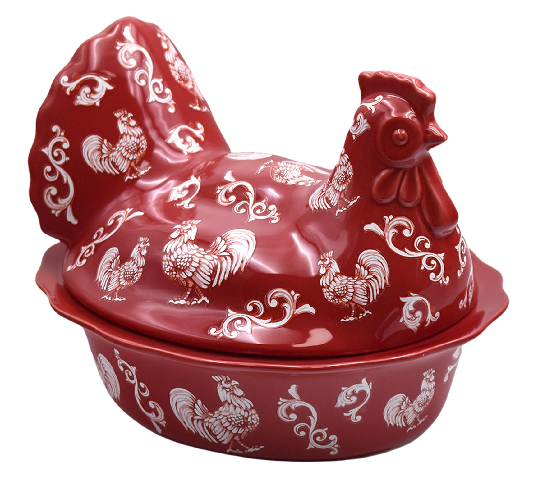 • Includes 2-qt baker and rooster-shaped lid