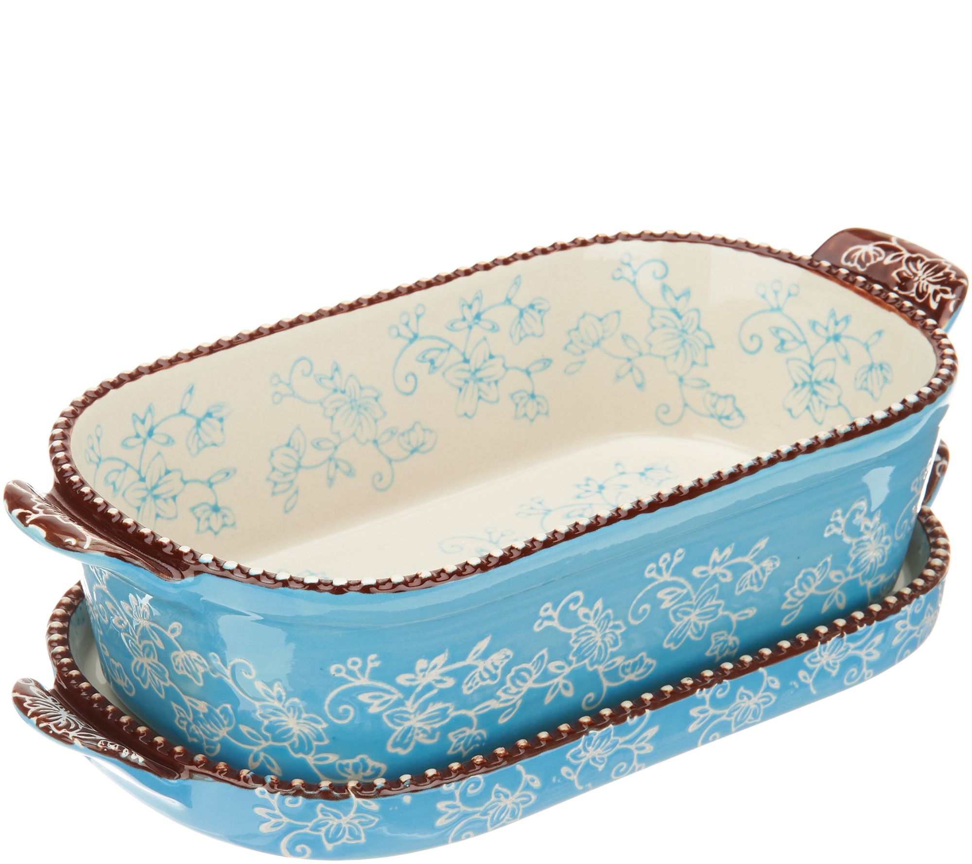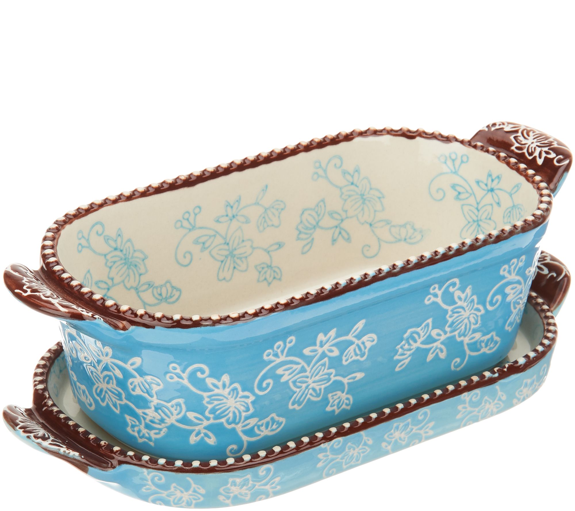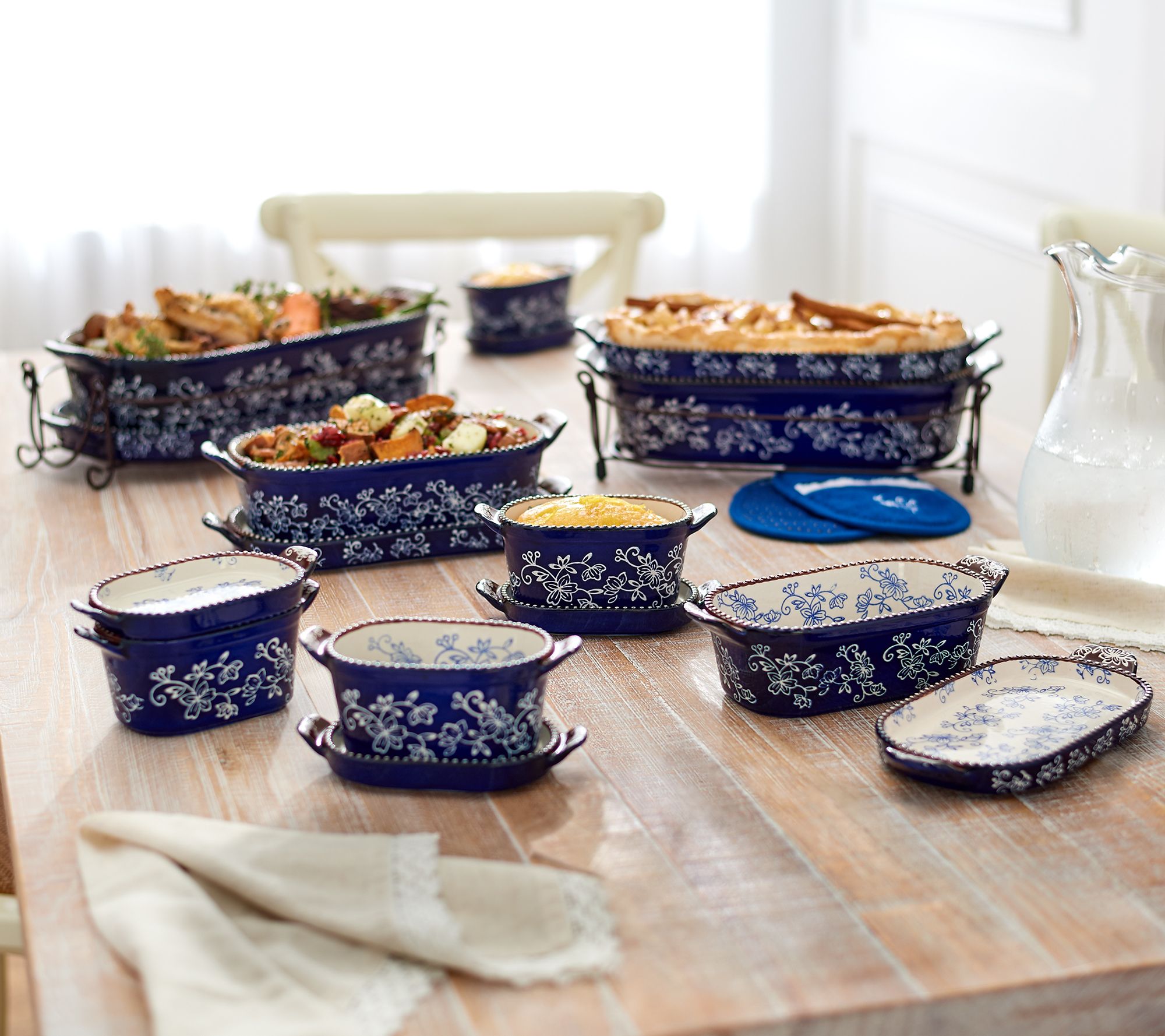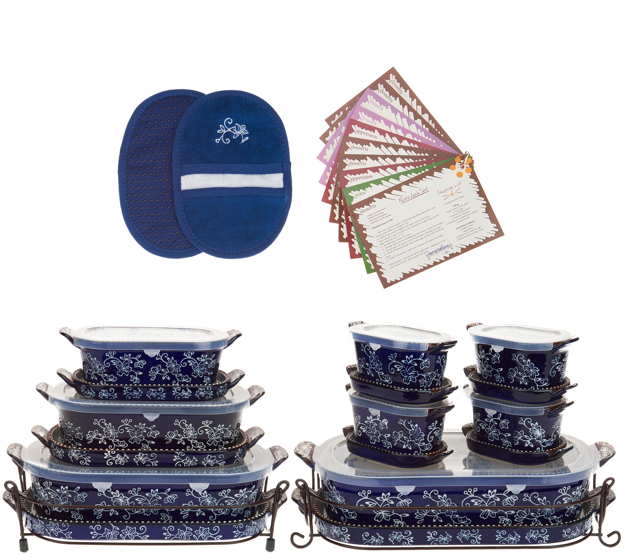 Elevate your entertaining and present delicious home-cooked meals with this Temp-tations 21-piece bakeware set. This Floral Lace set offers ceramic bakers in a new rounded rectangle shape--plus oven mitts and recipe cards--to take your delectable creations from oven to table in no time flat. From Temptations® Ovenware.