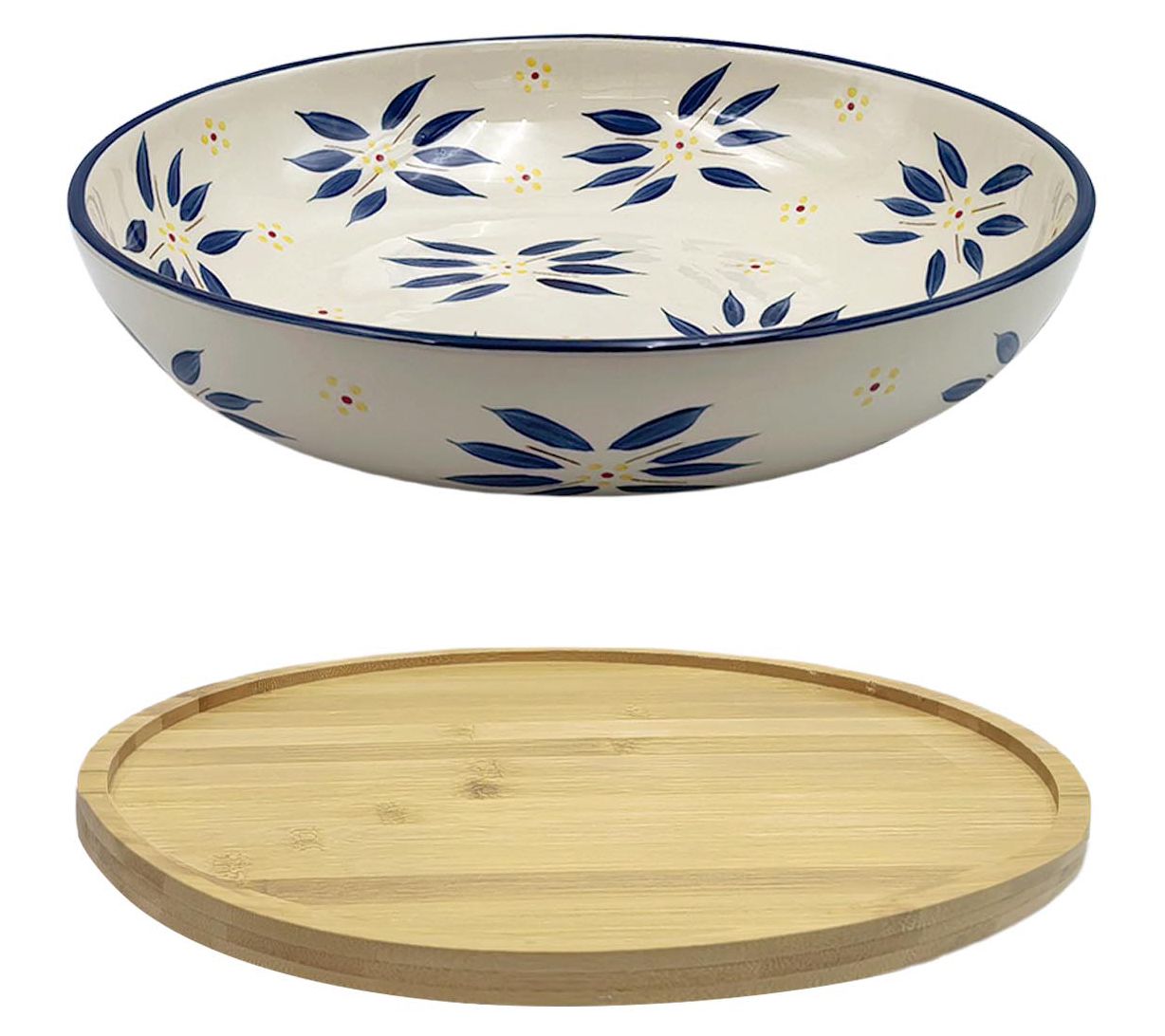 • Includes wooden Lazy Susan and 4-quart ceramic bowl