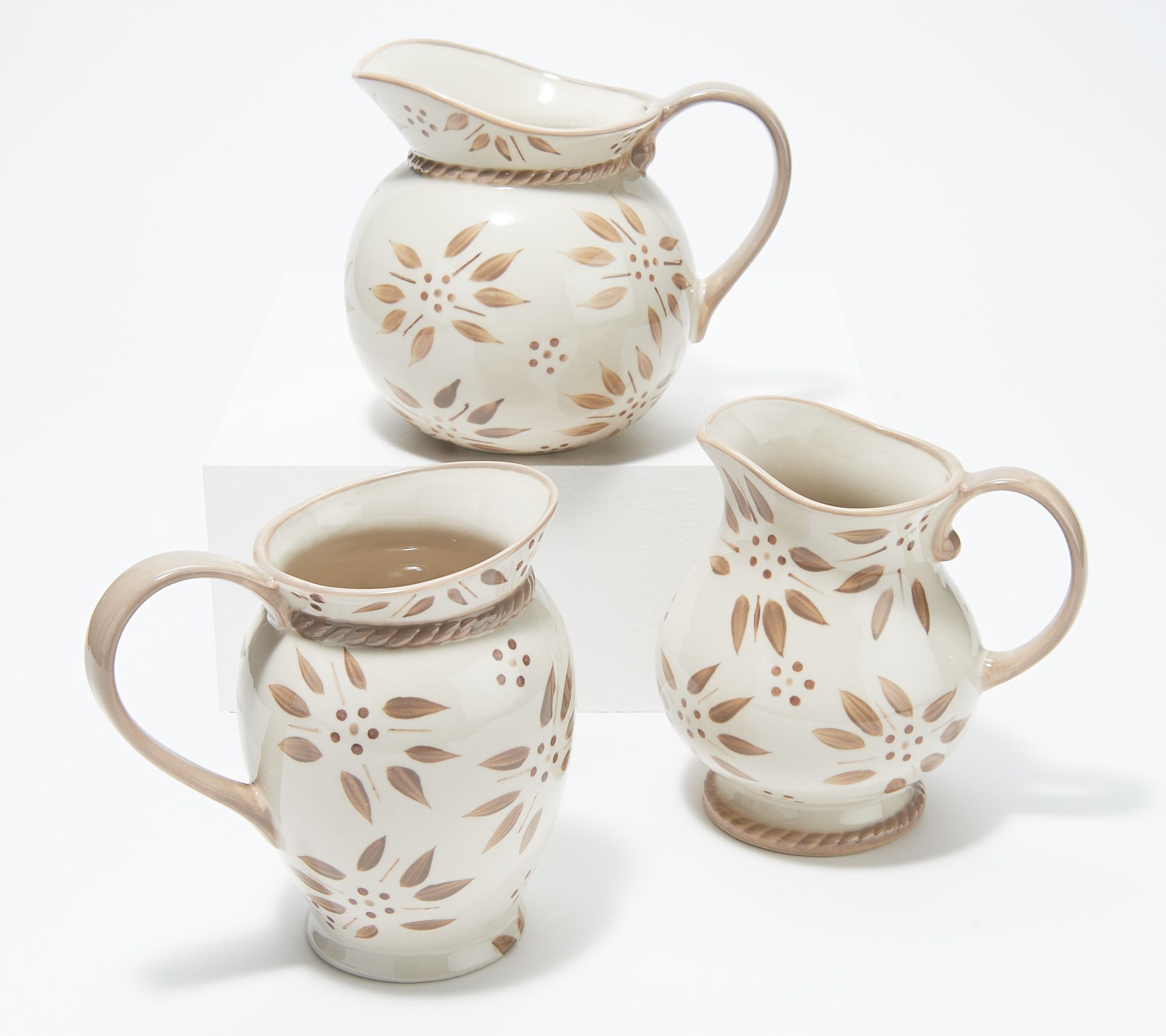 Add a charming, thoughtful touch to brunch with the family or dinner with friends with these three Temp-tations mini pitchers. Fill them each with something different or place them around the table for easy access. From Temp-tations® Ovenware.