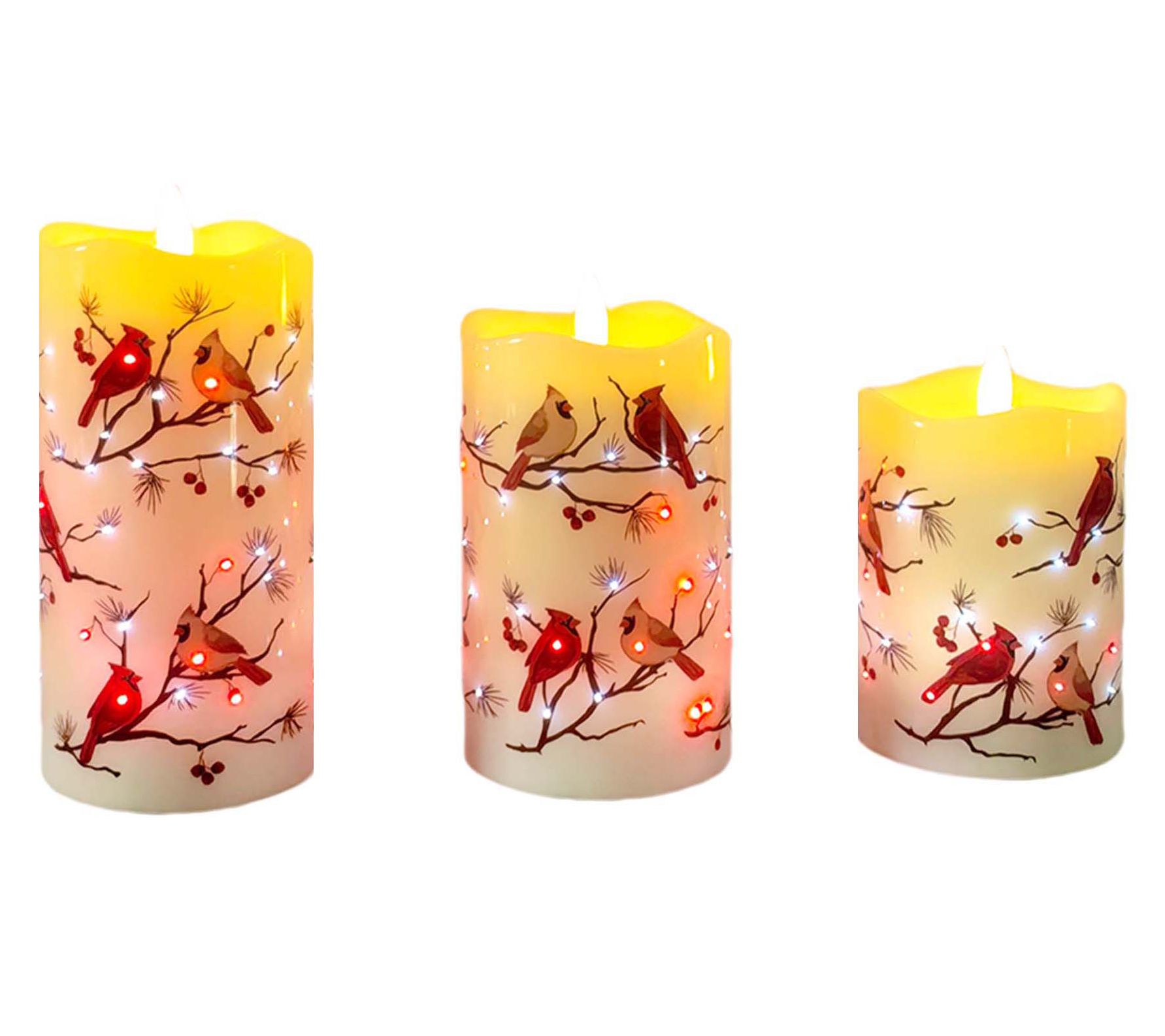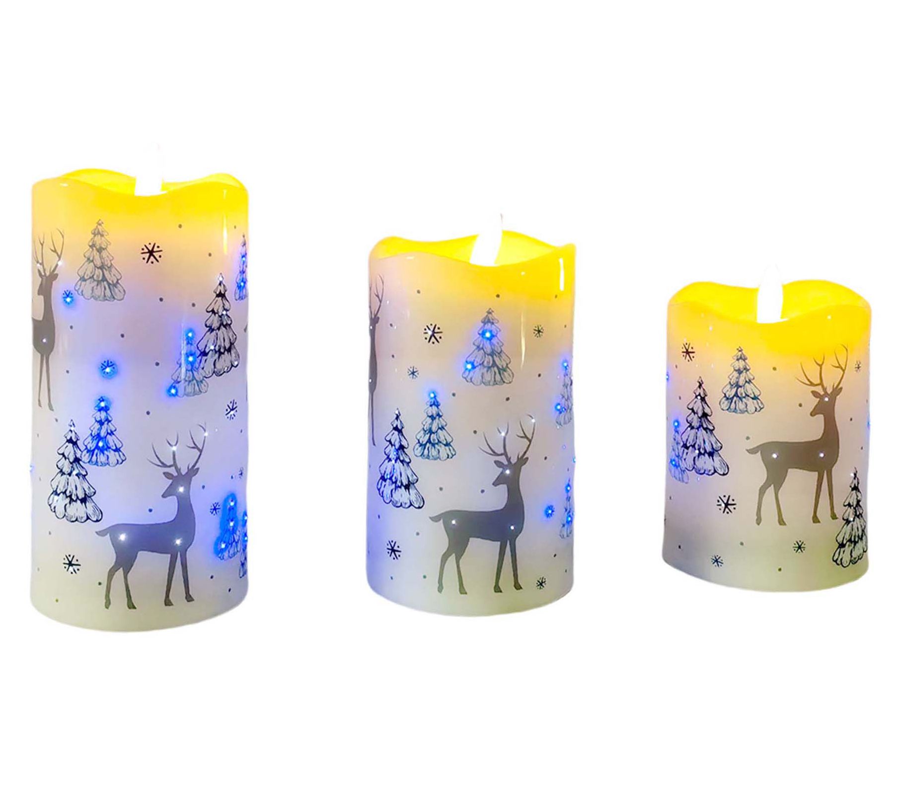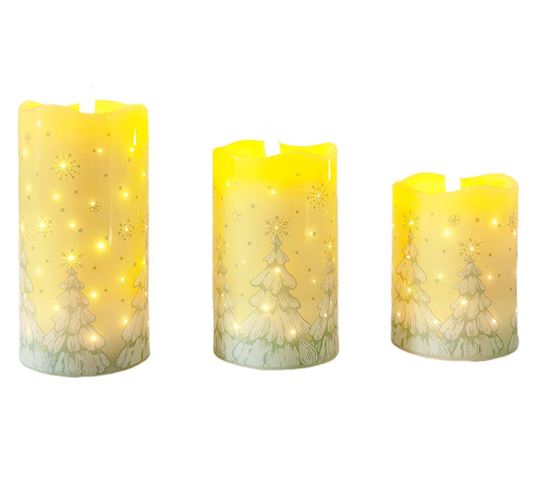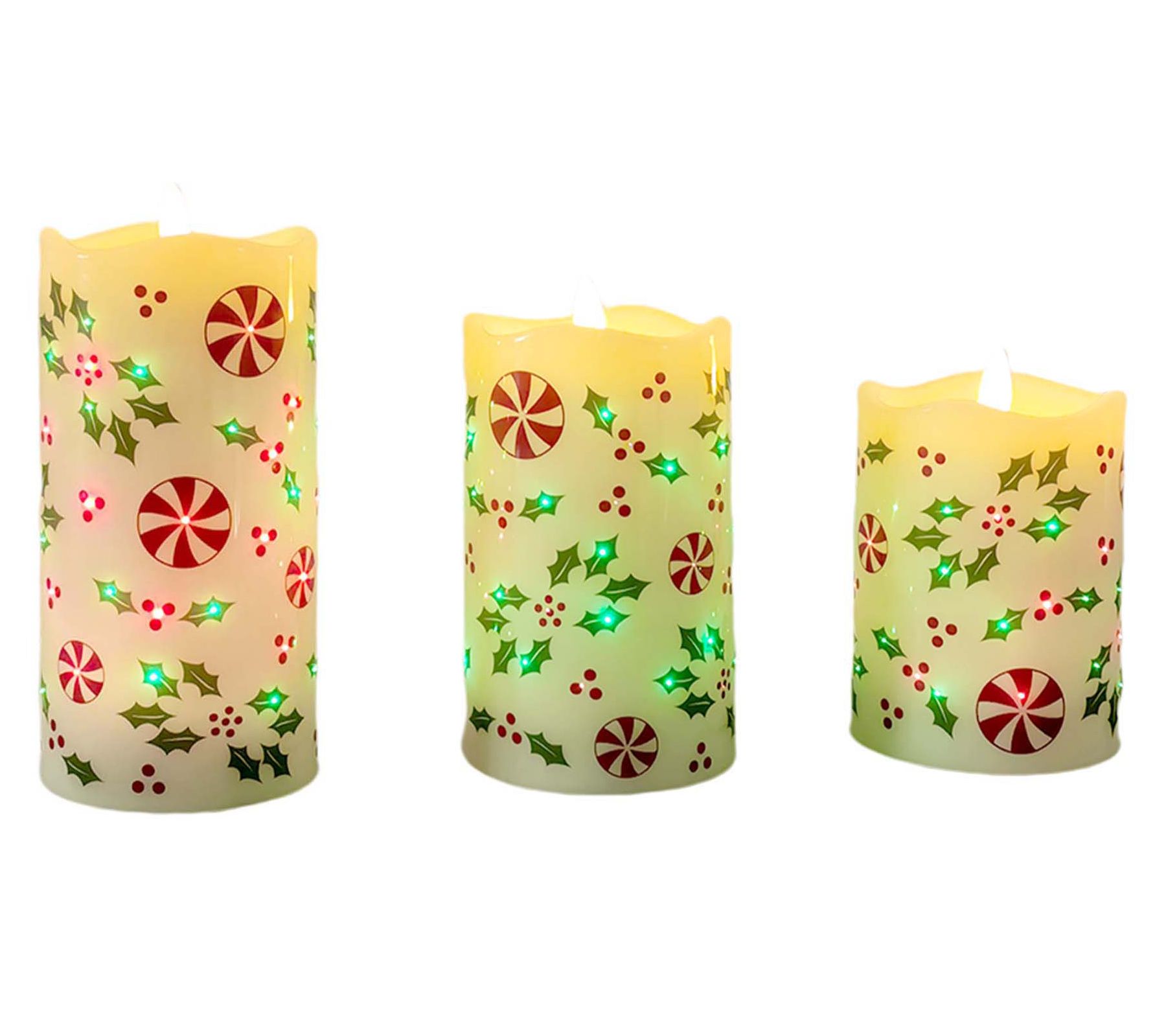 Add welcoming warmth to your winter decor with this set of three fiberoptic candles in stylish staggering heights. You'll get all the glow and none of the worry thanks to flameless technology. Place the trio along a mantel, cluster them on a coffee table, or use them to brighten a holiday buffet -- each candle brings a warm touch and a hint of magic, no matter the season or occasion. Gifting is a breeze with the included box, making it easy to share a little sparkle. From Temp-tations®.