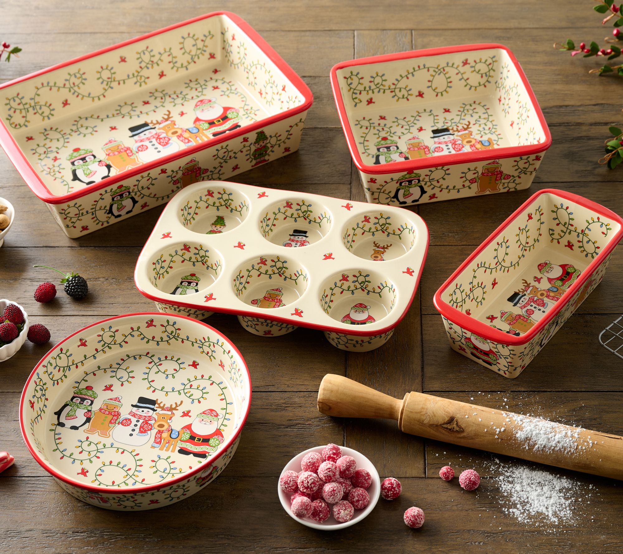 • Includes 4-qt baker, 2-qt baker, 0.85-qt loaf pan, 12-cup muffin pan, and 9" pie plate