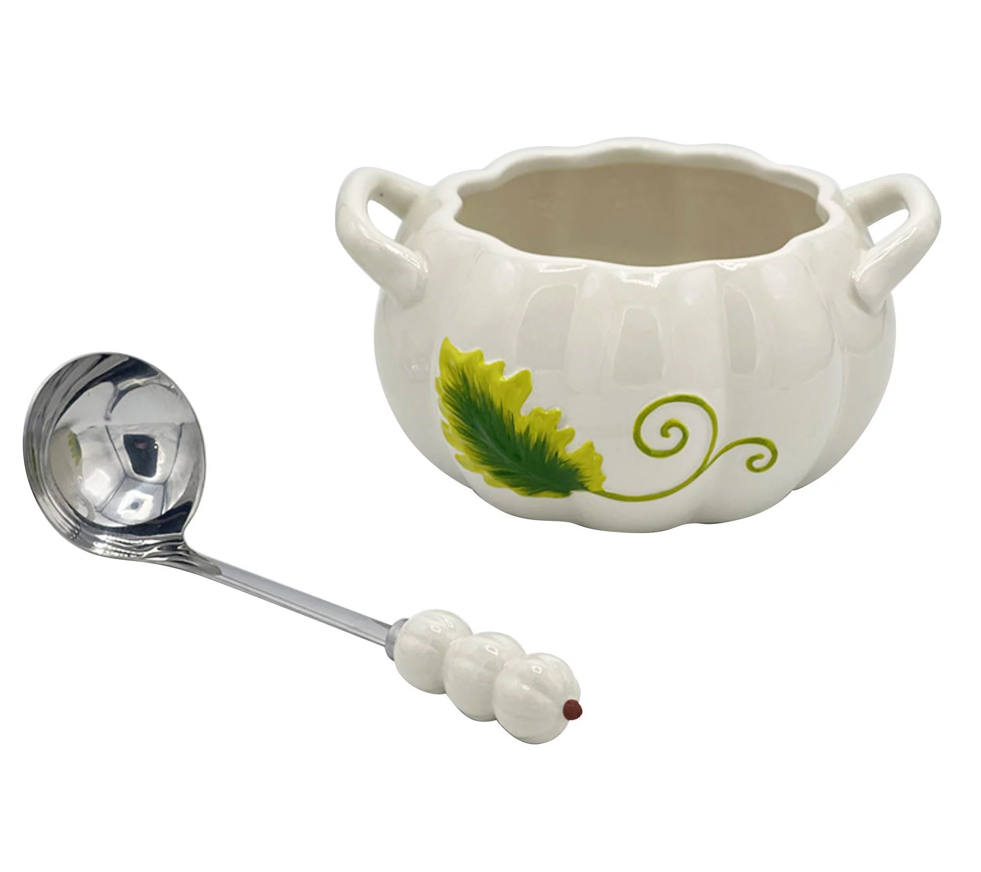 Company's coming over tonight and you've made your famous homemade tortilla soup (so yummy!). Dish it out in this pumpkin-designed soup tureen and ladle to add some elegance to the tasty dinner. From Temp-tations® Ovenware.