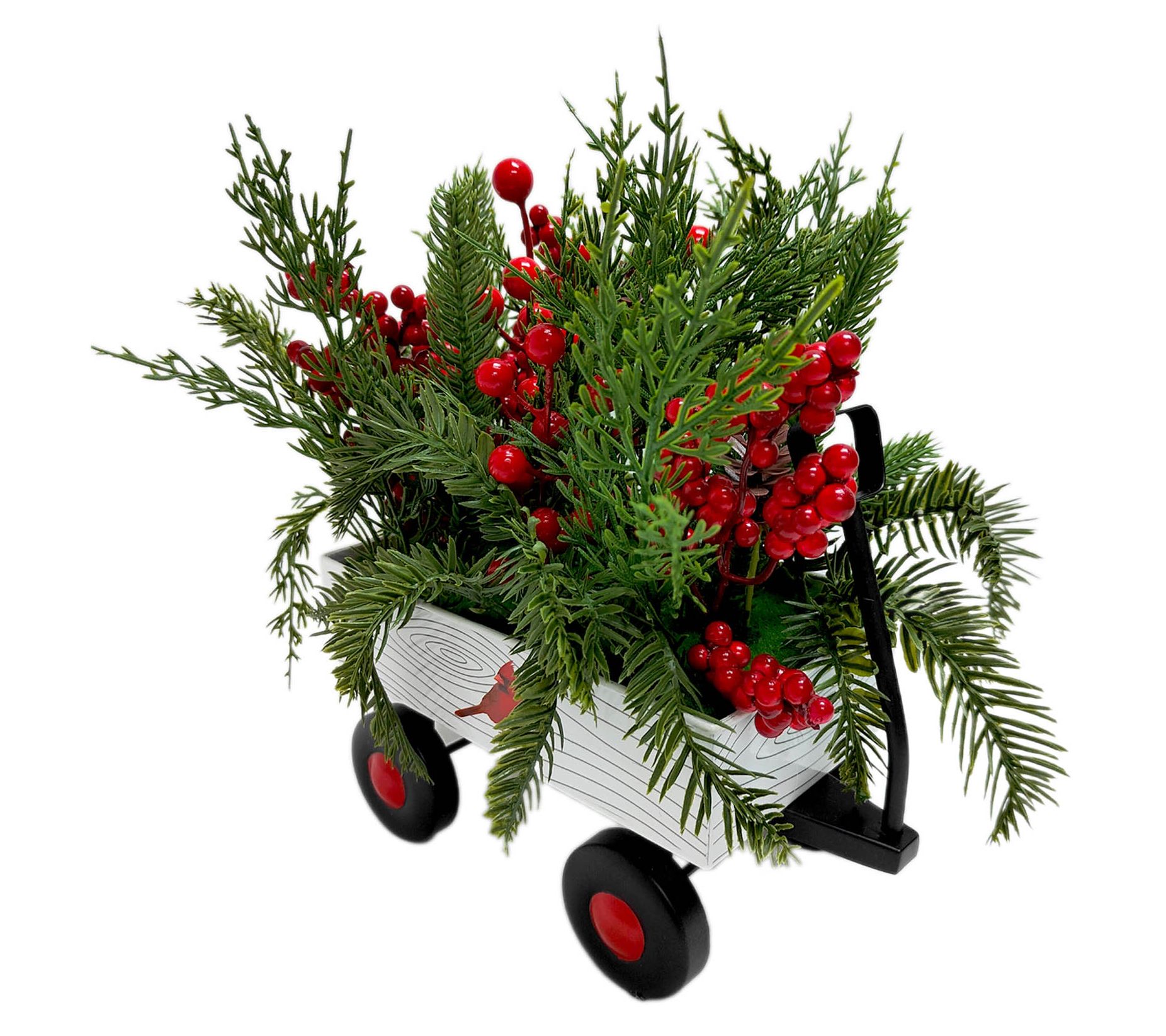 Picture this: a charming metal wagon filled with seasonal foliage as the centerpiece for your cozy winter gatherings. The overflowing design adds whimsy to tabletops or entryways, inviting compliments from guests all season. From Temp-tations®.