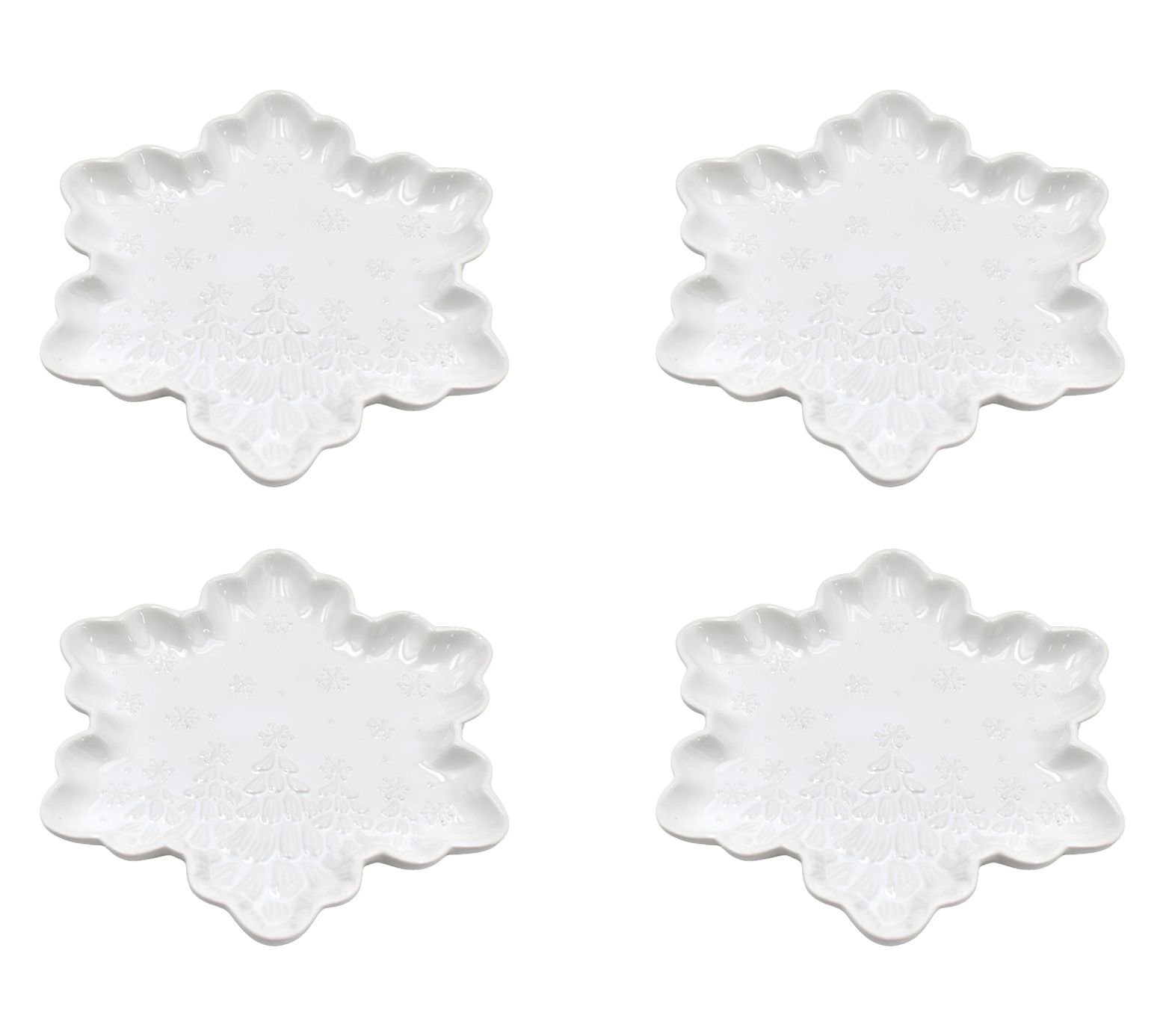 • Includes four 8" snowflake plates