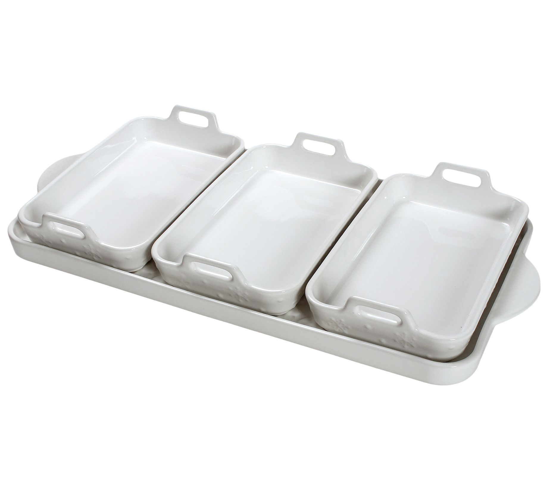 Mac and cheese. A small roast with veggies. A tray of brownies. Dinner (and dessert) is done! This trio of micro bakers gets supper -- and something sweet -- on the table all at the same time. Plus, you'll also receive a serving tray to complete the coordinated presentation. From Temp-tations® Ovenware.