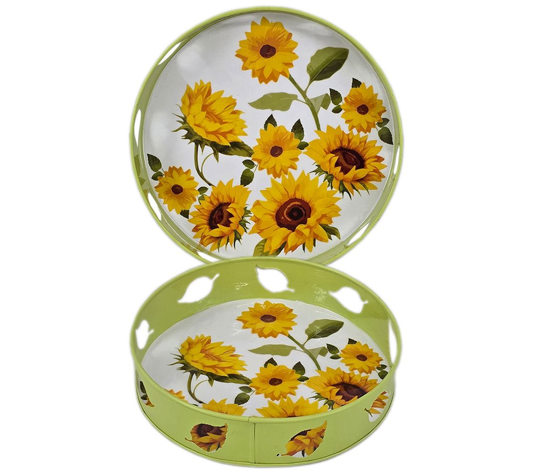 • Measurements: Smaller Tray 10"Diam x 2.25"H; Larger Tray 12"Diam x 2.25"H