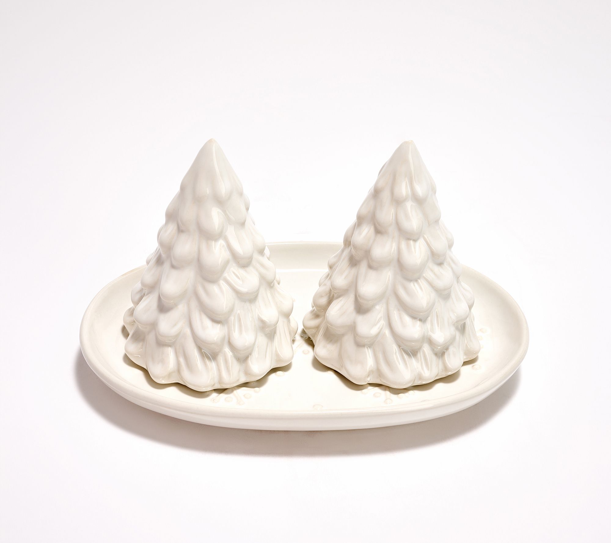 Spice up your holidays and seasonal celebrations! Whether it's a weekend breakfast or a festive dinner gathering, this three-piece set brings a dash of fun and holiday flair to your table. Delight guests with playful shakers resting on a coordinated ceramic plate -- each design reflecting winter's cheerful spirit. From Temp-tations®.
