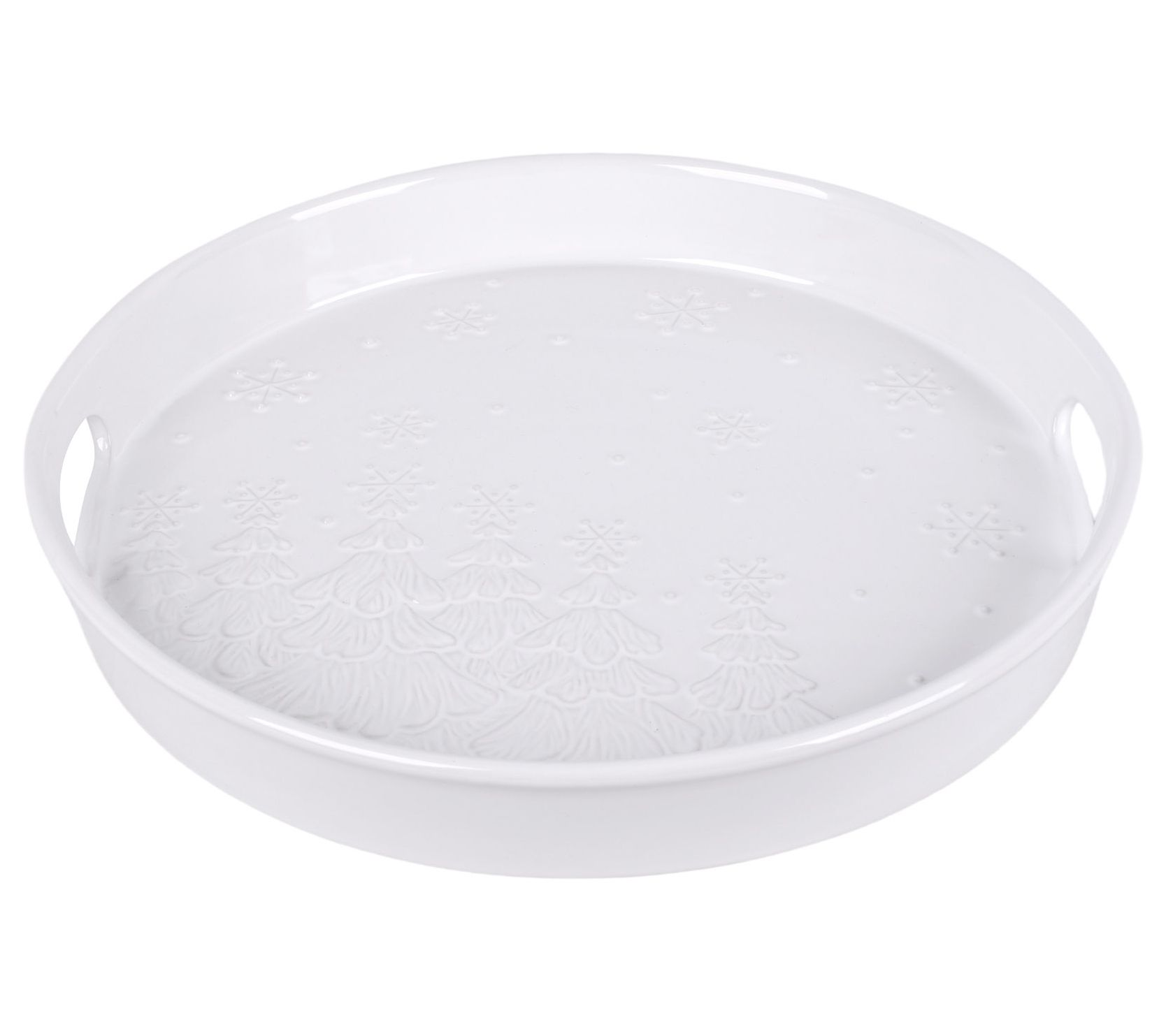 Serve up a side of seasonal spirit on this special-edition tray. Raised sides make the oven-to-table ceramic dish ideal for passing around appetizers, desserts, or even main courses. From Temp-tations® Ovenware.