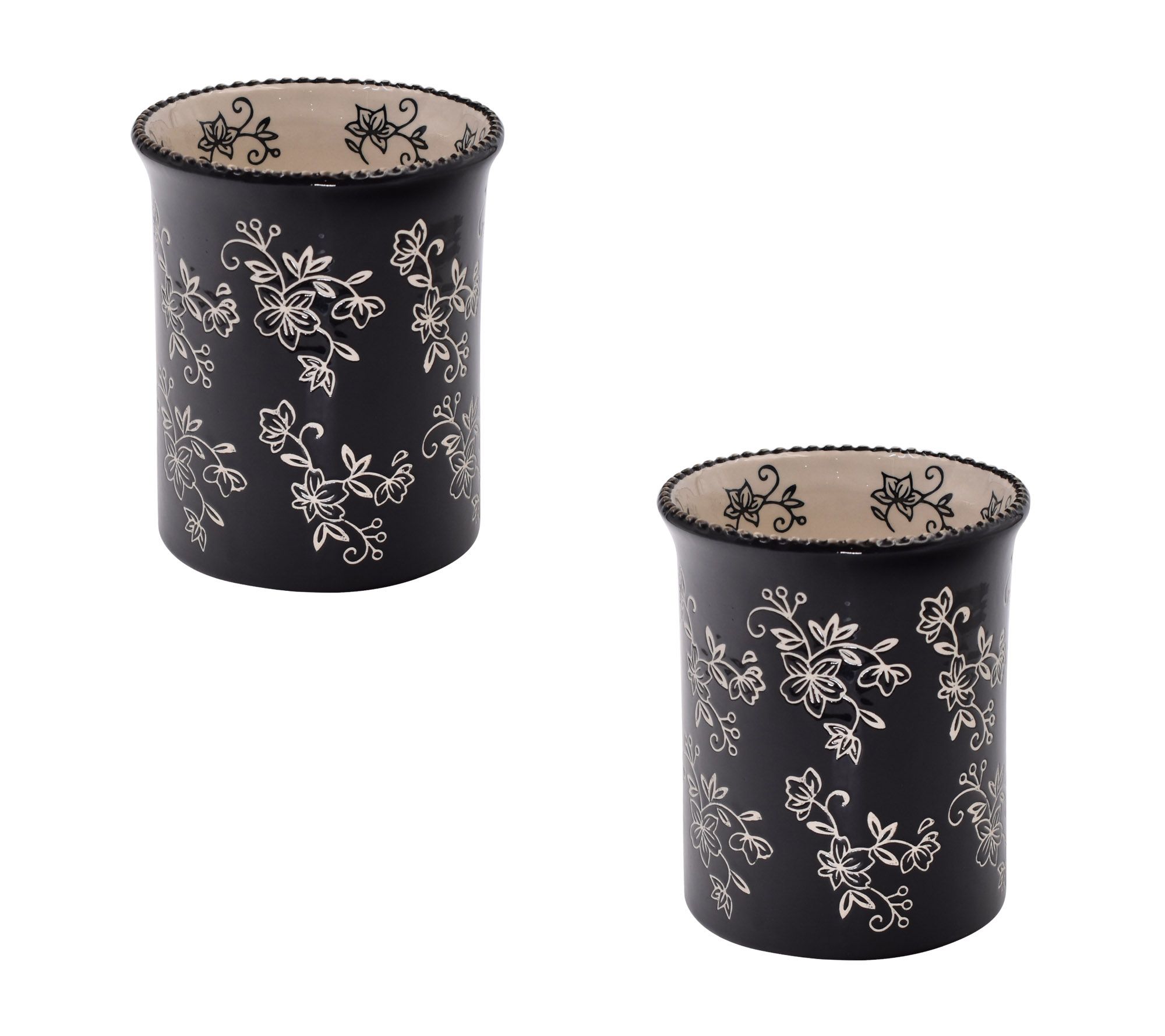 Take some of your most-used utensils out of that cluttered drawer. They'll be right in reach and beautifully displayed in these ceramic crocks that make colorful additions to your countertop. From Temp-tations® Ovenware.