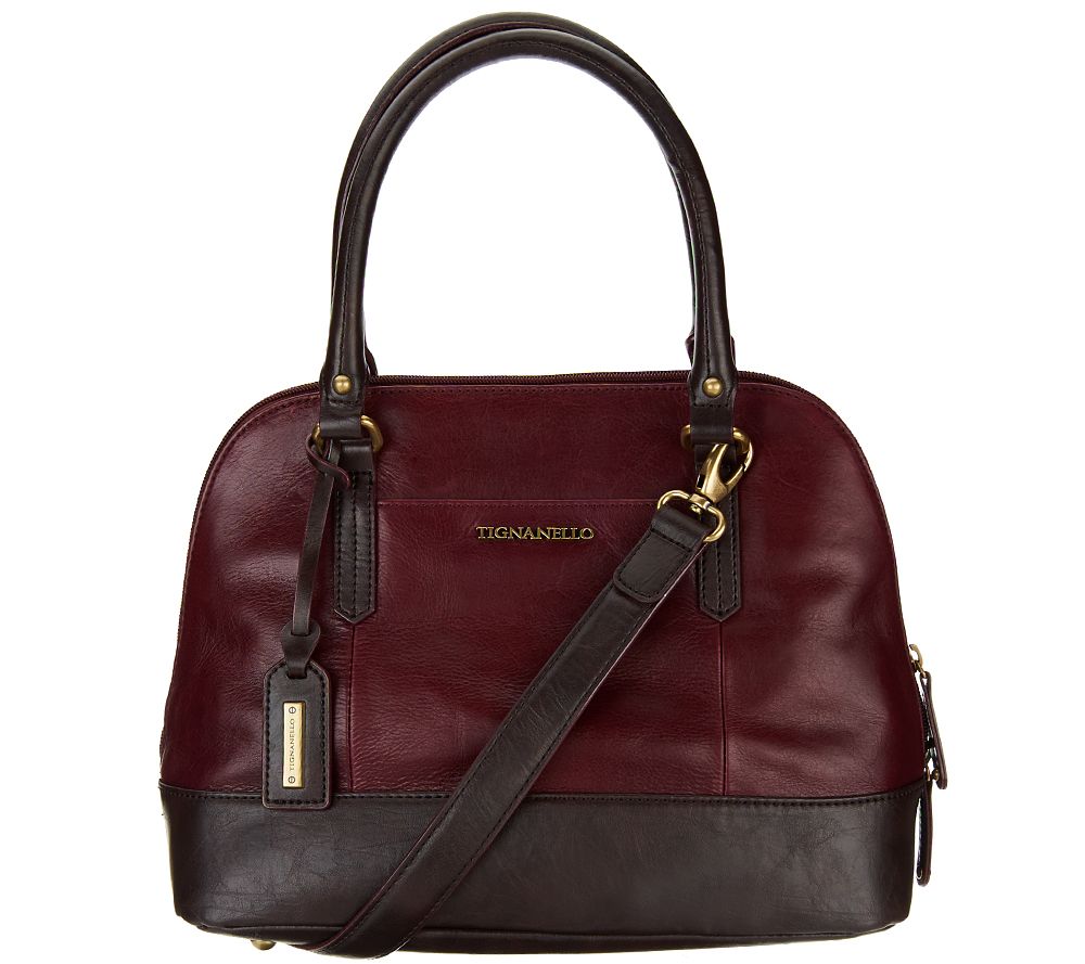 Retro allure, of-the-moment updates. Glazed vintage leather in a classic domed satchel shape is the crave-worthy combination of this Tignanello handbag. It's loaded with to-die-for details like double rolled handles and a removable shoulder strap, with an optimally organized interior and RFID protection to help guard against identity and data theft. From Tignanello.