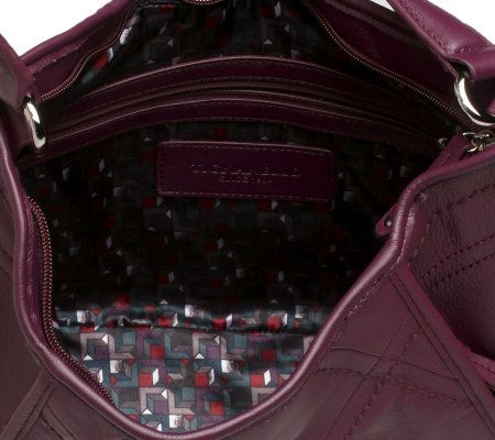 All-purpose style. Crafted of gorgeous glove leather, this versatile hobo bag moves from the work week to the weekends with ease. It's dressed up with chic stitching details and outfitted with two easy-access, hidden zip pockets on the front. From Tignanello.