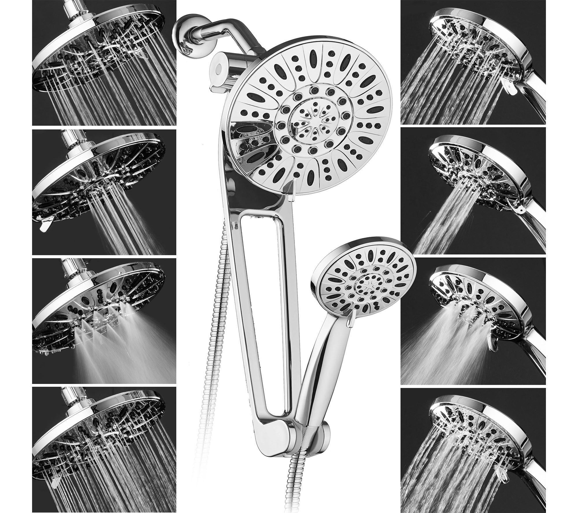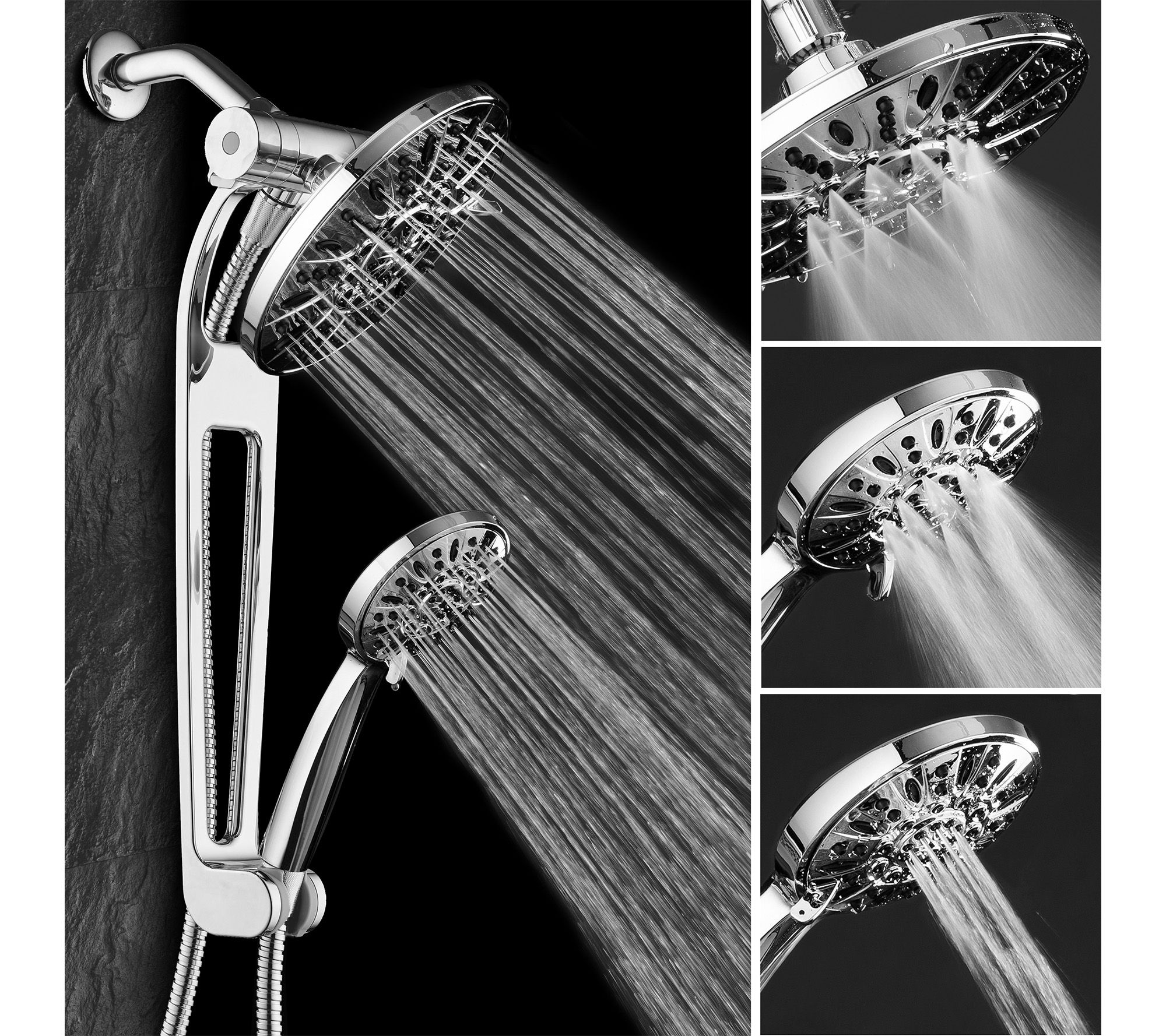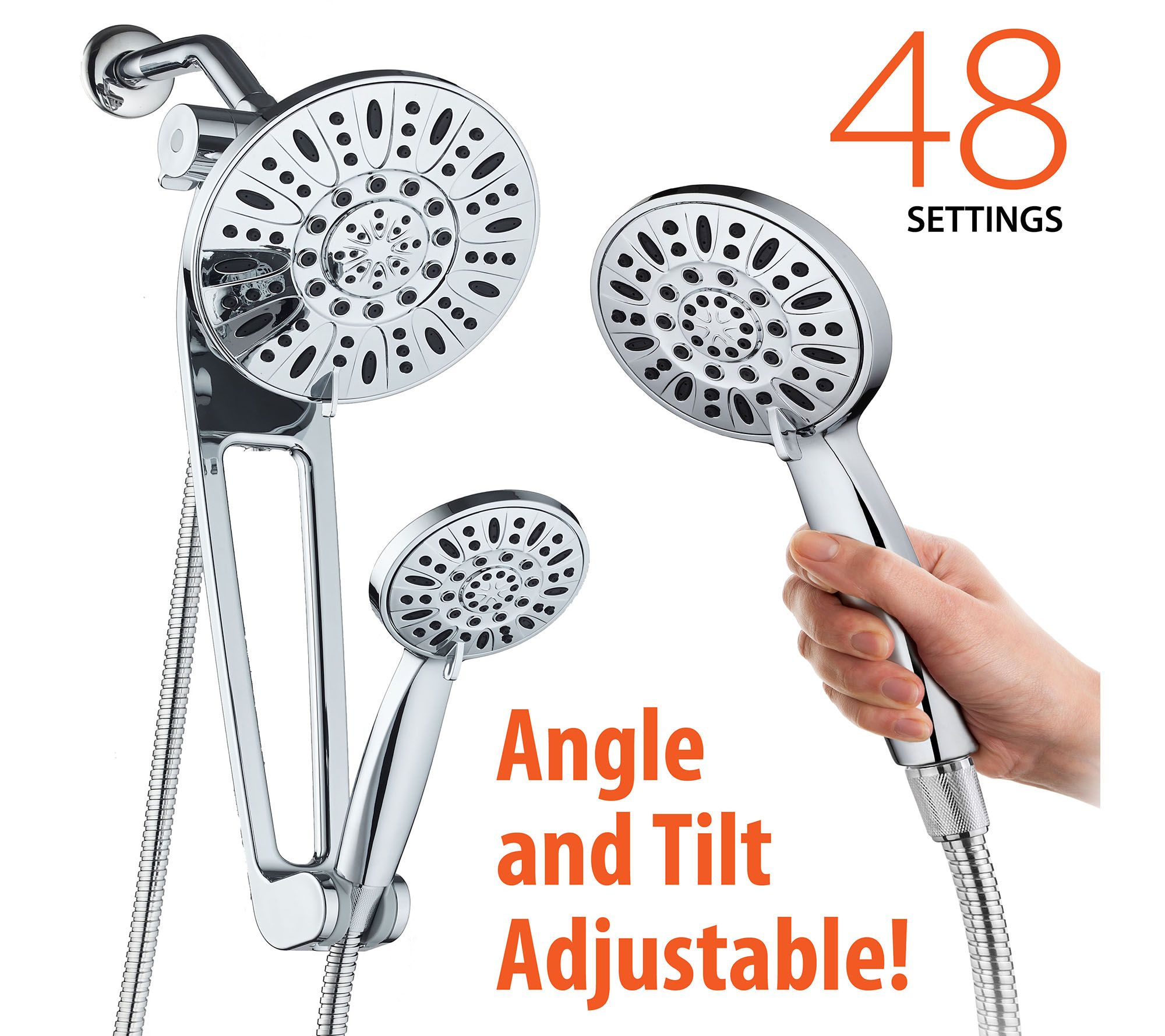 • Includes shower head, hand shower, 6' hose, three-way diverter, and 18" adjustable extension arm with bracket