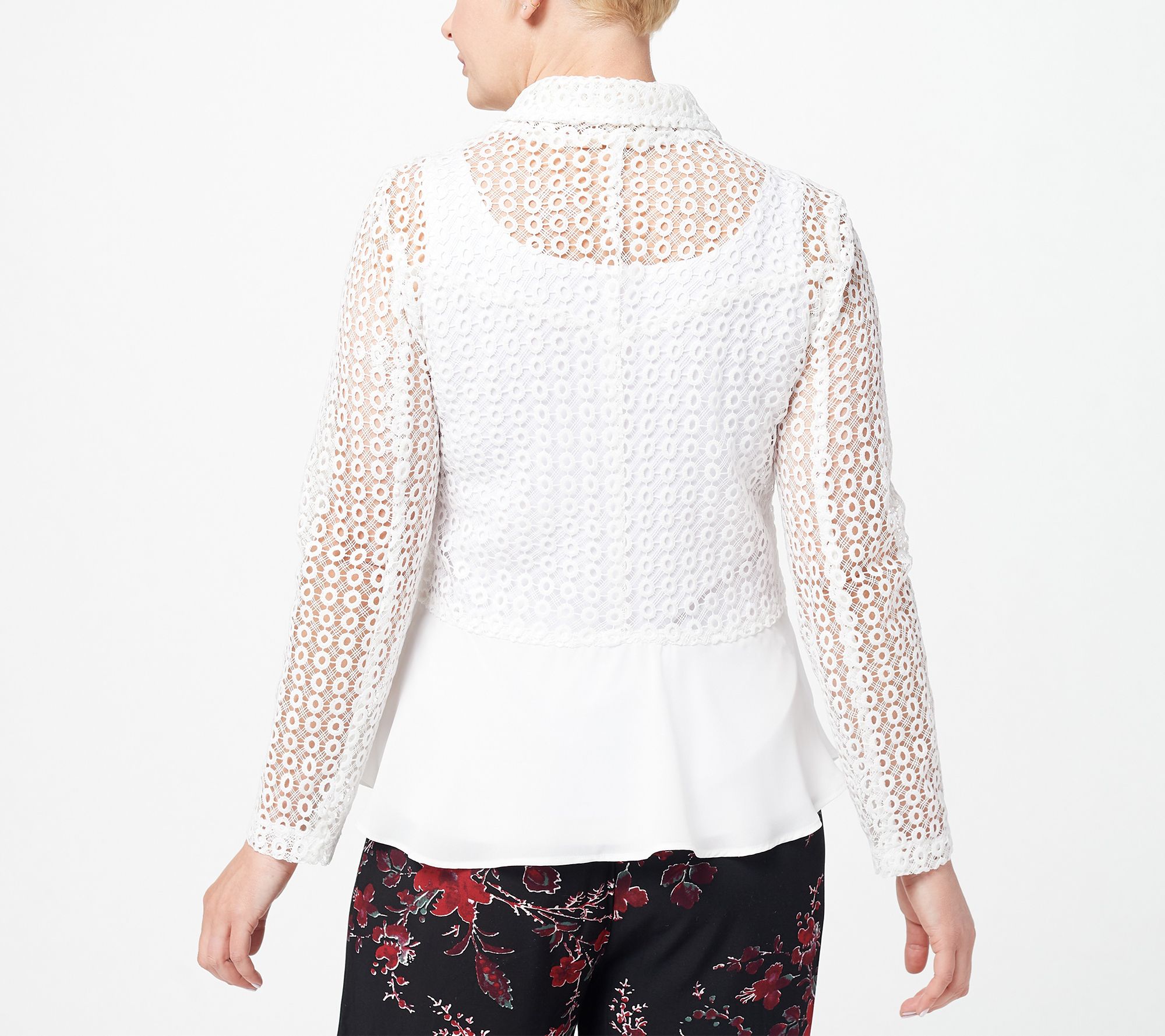 "As Is" Truth + Style Eyelet Open Weave Jacket w/Chiffon Trim