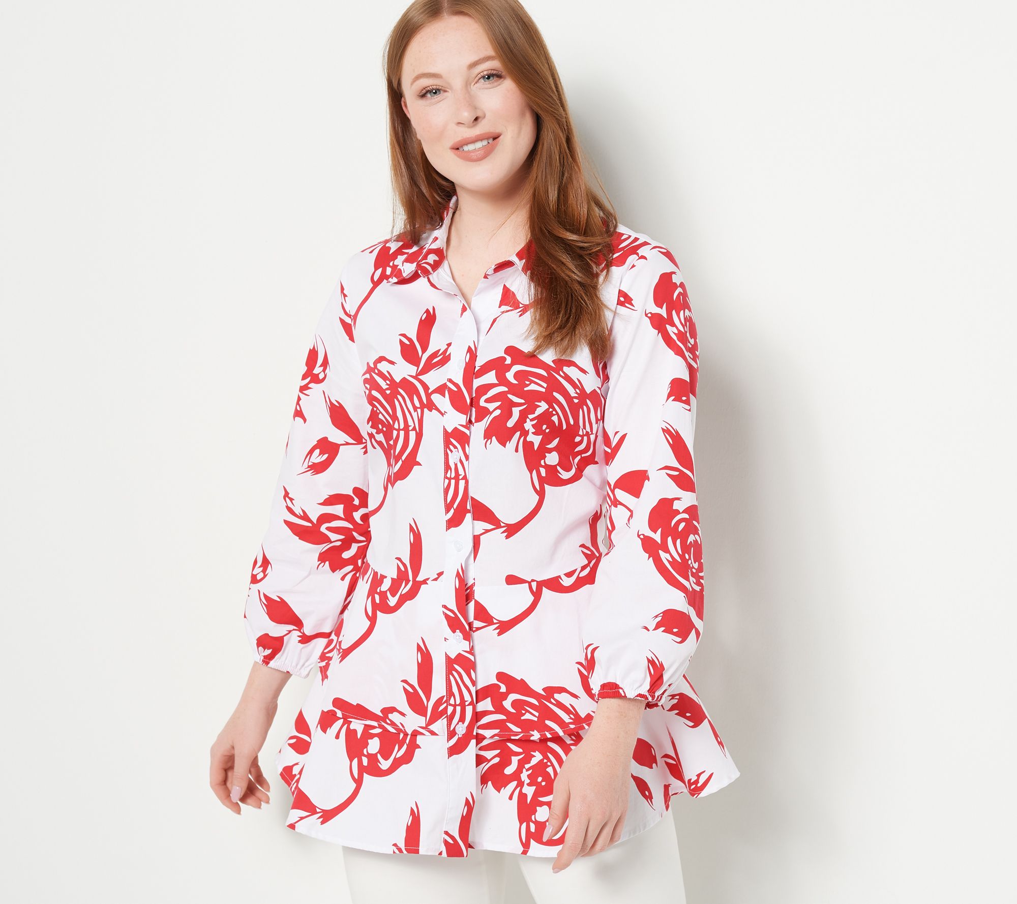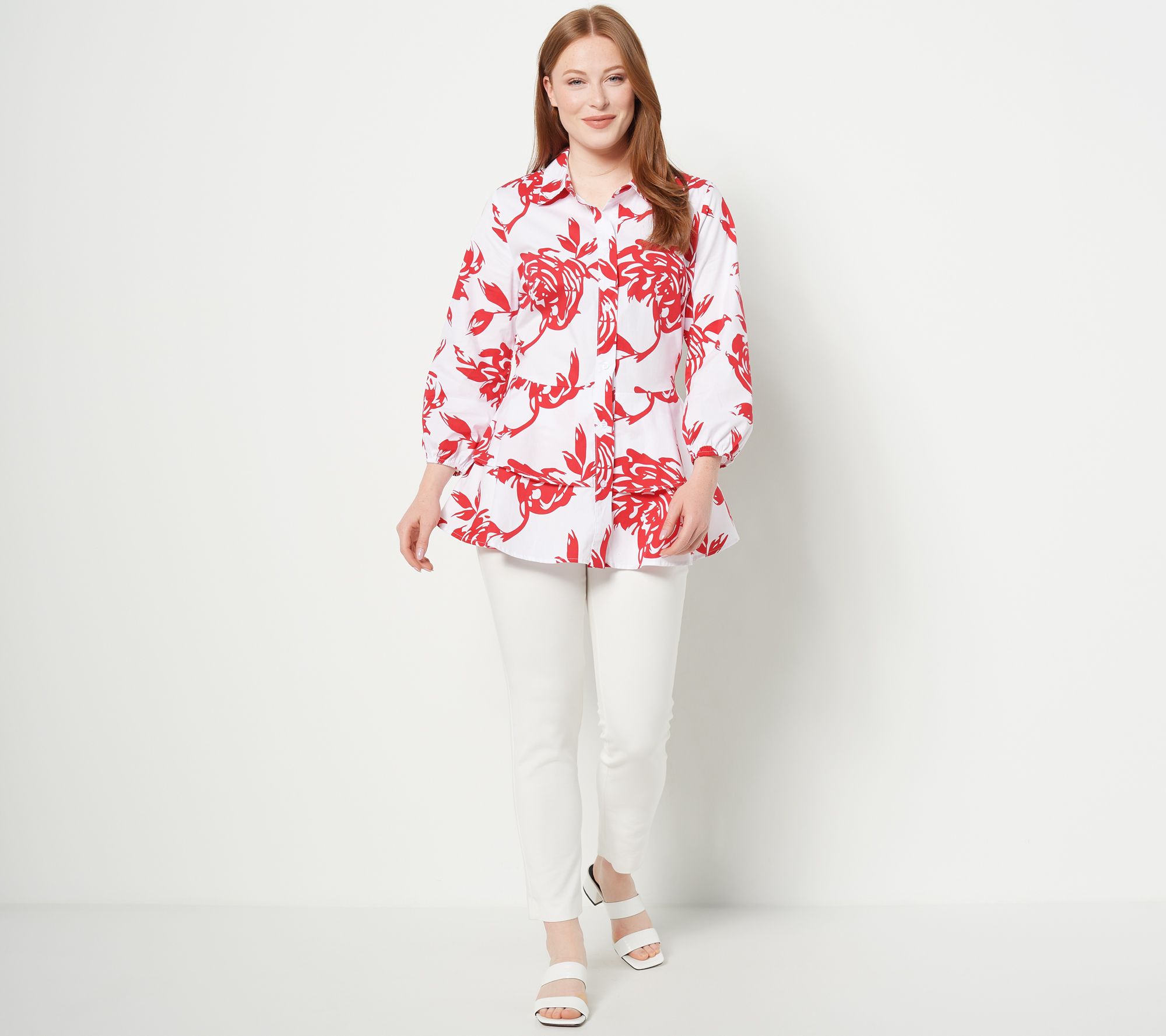 "As Is" Truth + Style Printed Stretch Cotton Poplin Top