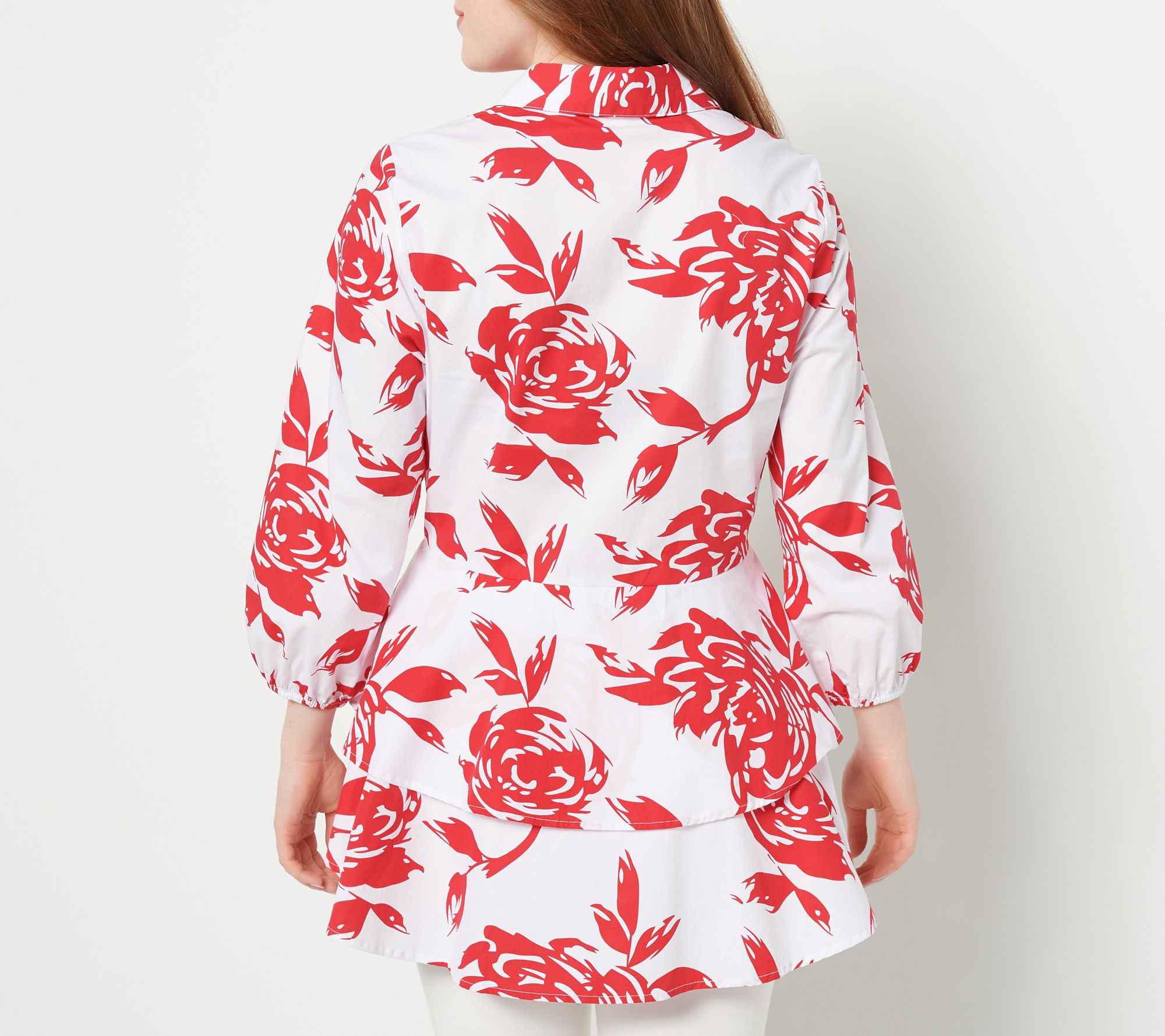 • Features: floral print, double peplum, long sleeves, shirt collar