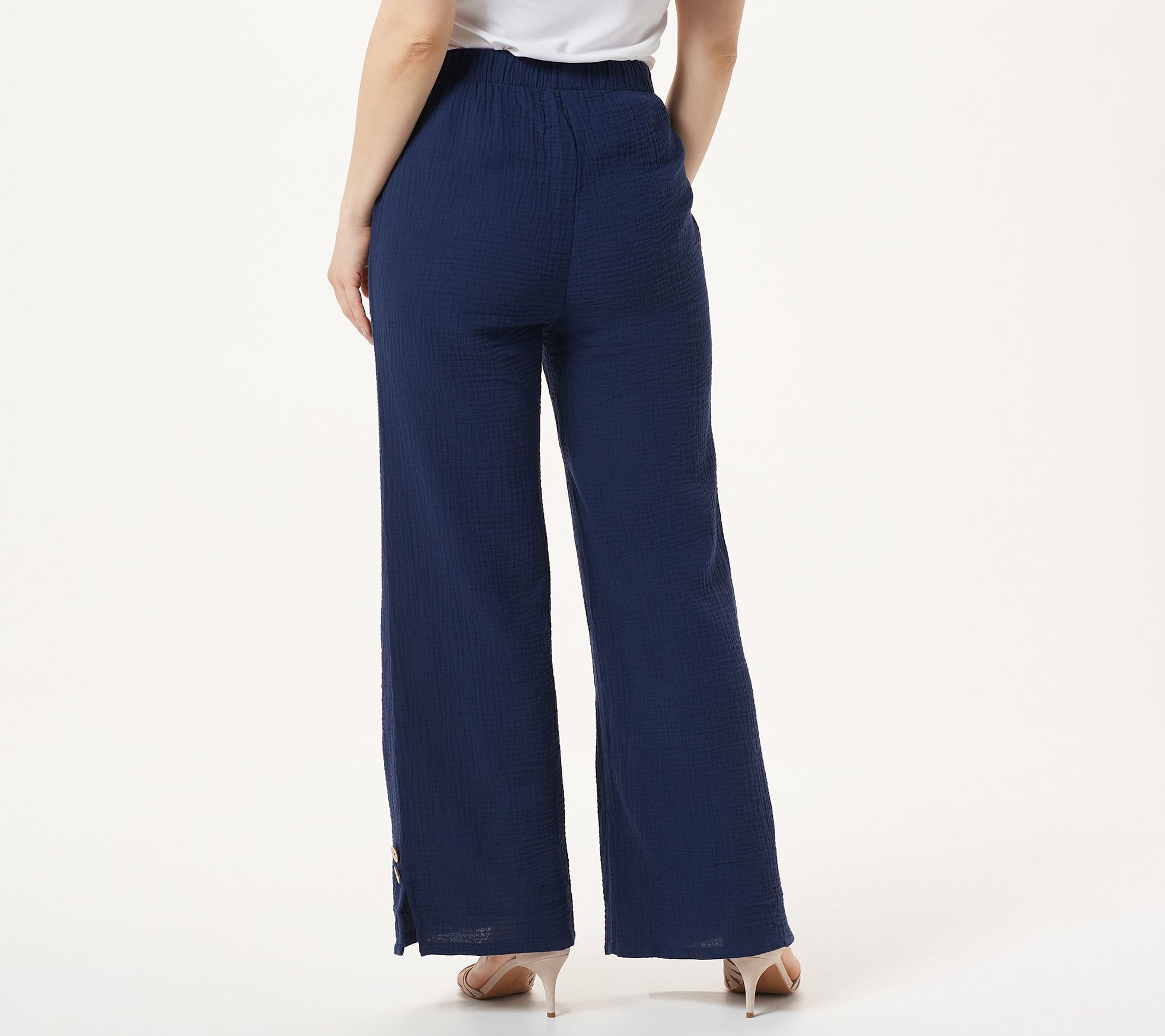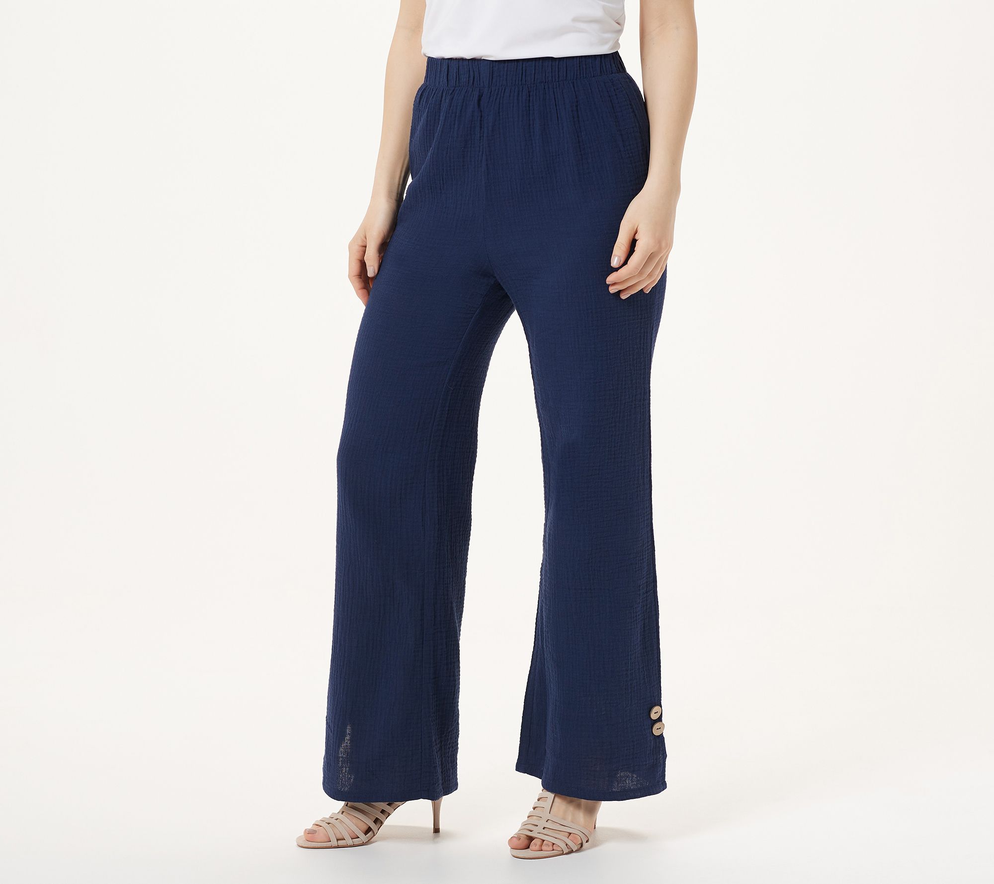 "As Is" Truth + Style Regular Crinkled Woven Pull-On Pants w Button Detail