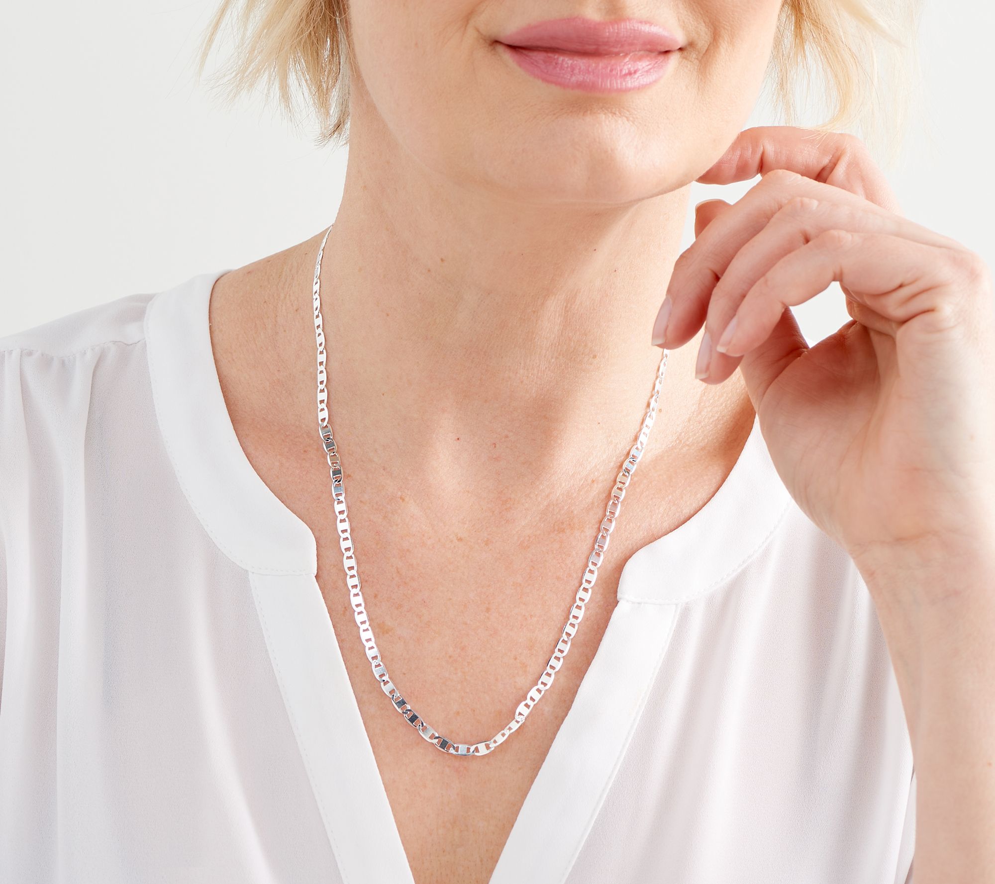• Mariner link, diamond-cut design; polished finish