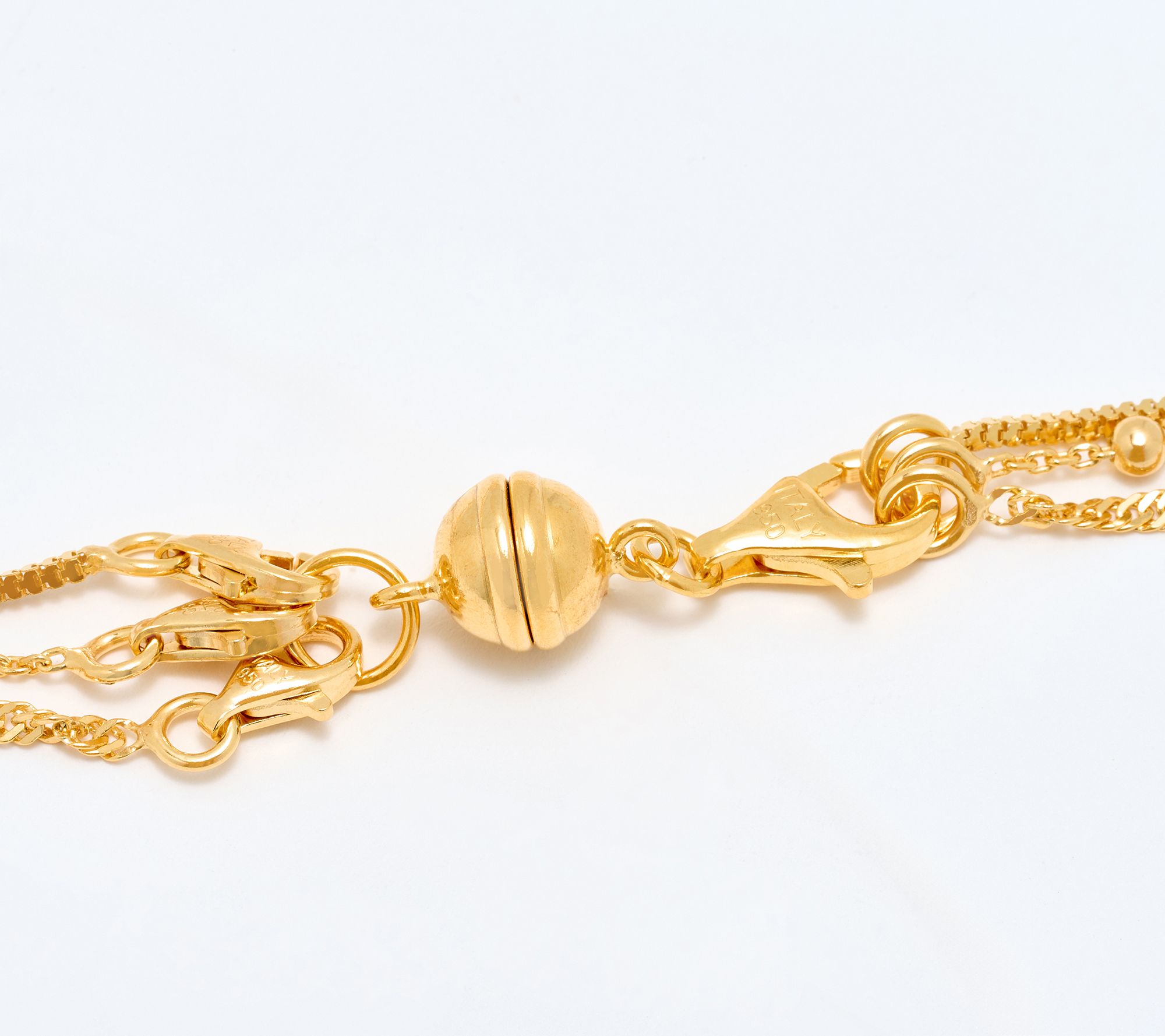 Great news for those who love to layer their chains or can never pick just one! This Italian-made necklace includes three textured chain stunners -- fluid and rope-like Singapore, beaded forzatina, and shiny squared snake -- designed to be worn together or individually. That's seven potential ways to wear it. An ingenious magnetic bead connector (that's been thoughtfully rescaled on this version) helps each one sit just right at the neckline, without tangles!