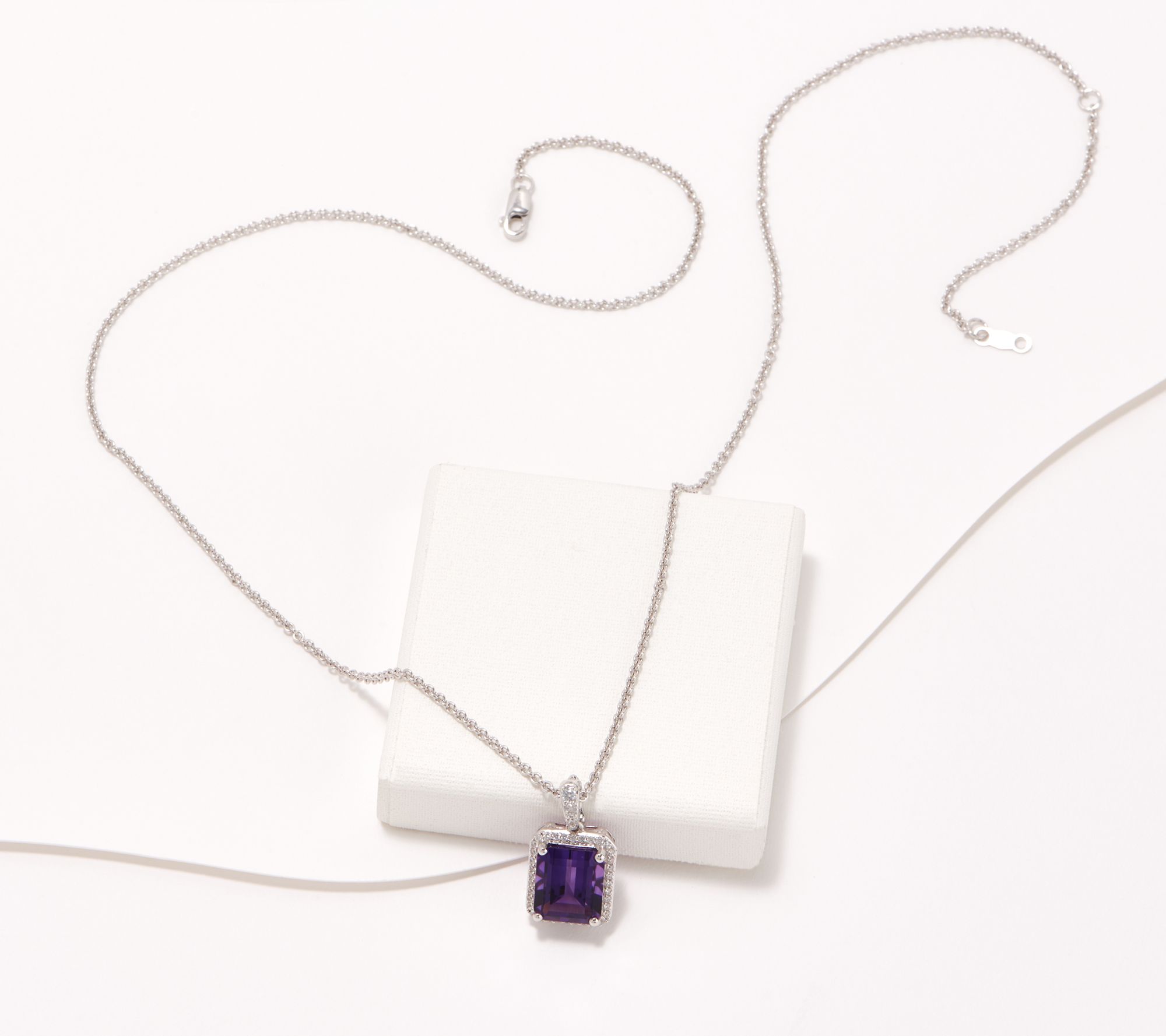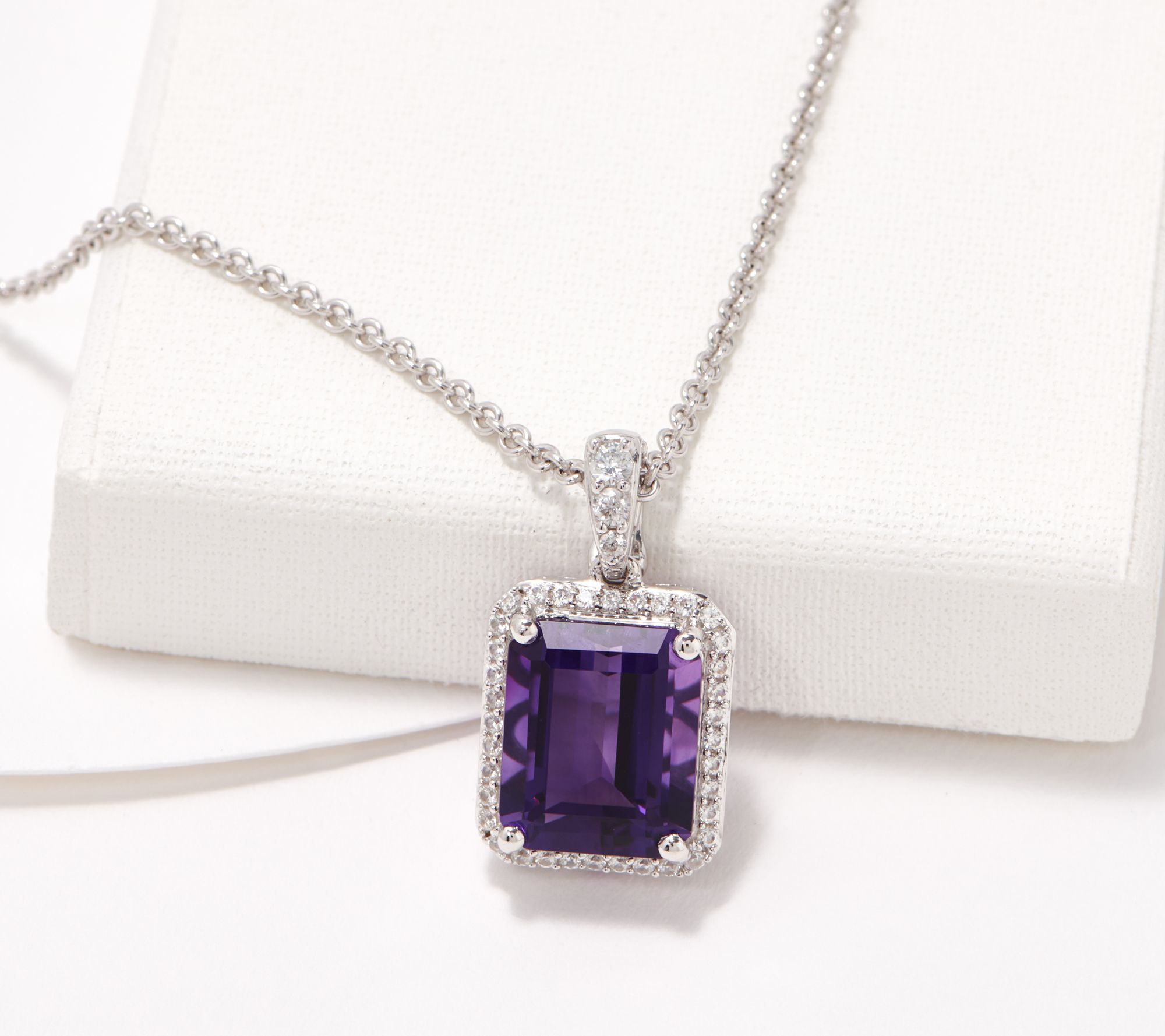 We hear you're itching to debut a new statement-making piece. Well, let's take a long look at this Uruguayan amethyst necklace. The octagon cut shows off the deep distinctive hue of the amethyst, while the white zircon accents add a lighter touch to complete this spotlight-stealing style.