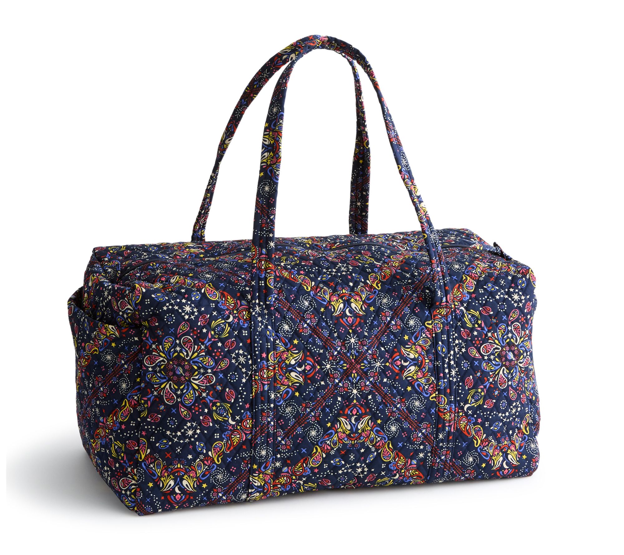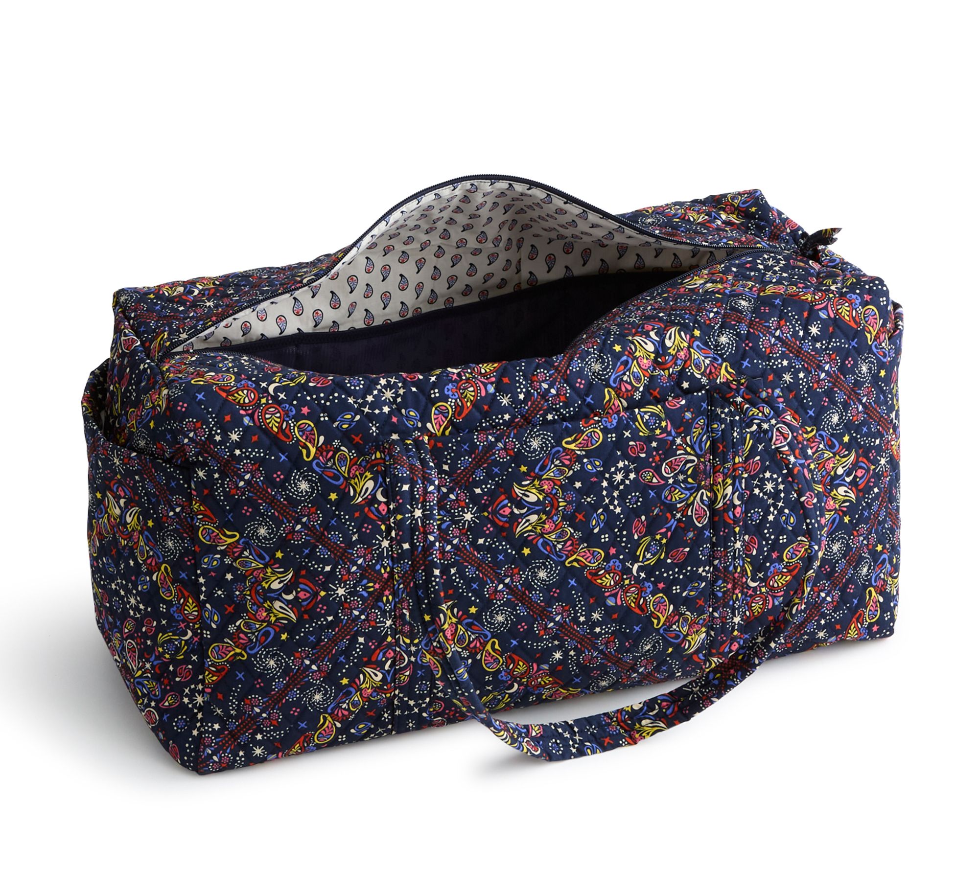 Set off on your next adventure in vibrant style with this Vera Bradley large duffel -- a travel companion that will turn heads! Tailored for the modern wanderer with a flair for pretty prints, the spacious bag combines generous storage with elegant details, prepping you for spontaneous getaways and epic expeditions alike. From Vera Bradley.