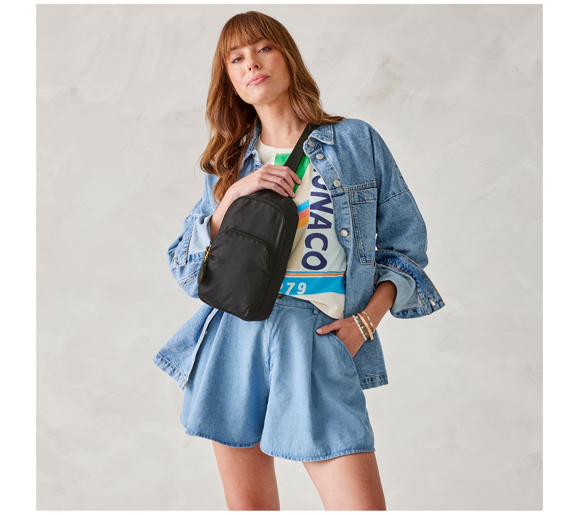 • Measures approximately 6.5"W x 11"H x 2.75"D with a 44"L strap; weighs 2.72 oz