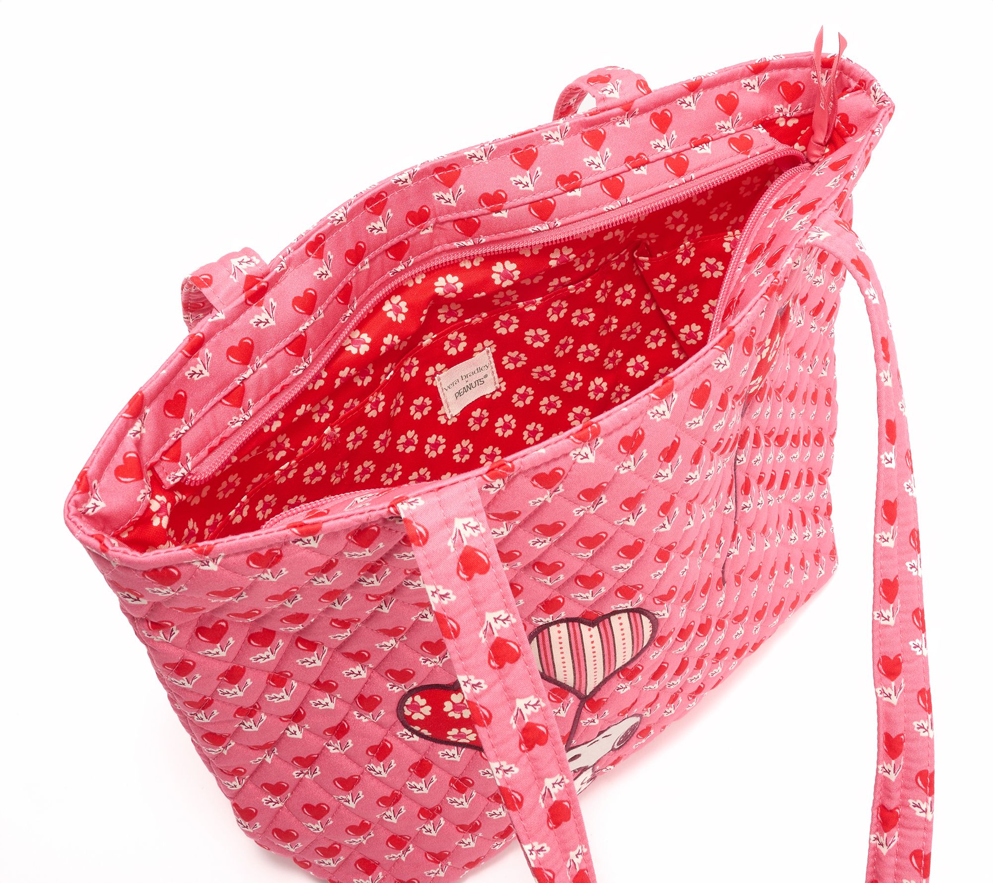 Busy days and weekend getaways are easier with this whimsical Peanuts tote that combines playful design with practical organization. Secure your belongings with the zip closure and keep essentials sorted in roomy interior slip pockets, while the exterior slip pocket gives you quick access on the go. From Vera Bradley.