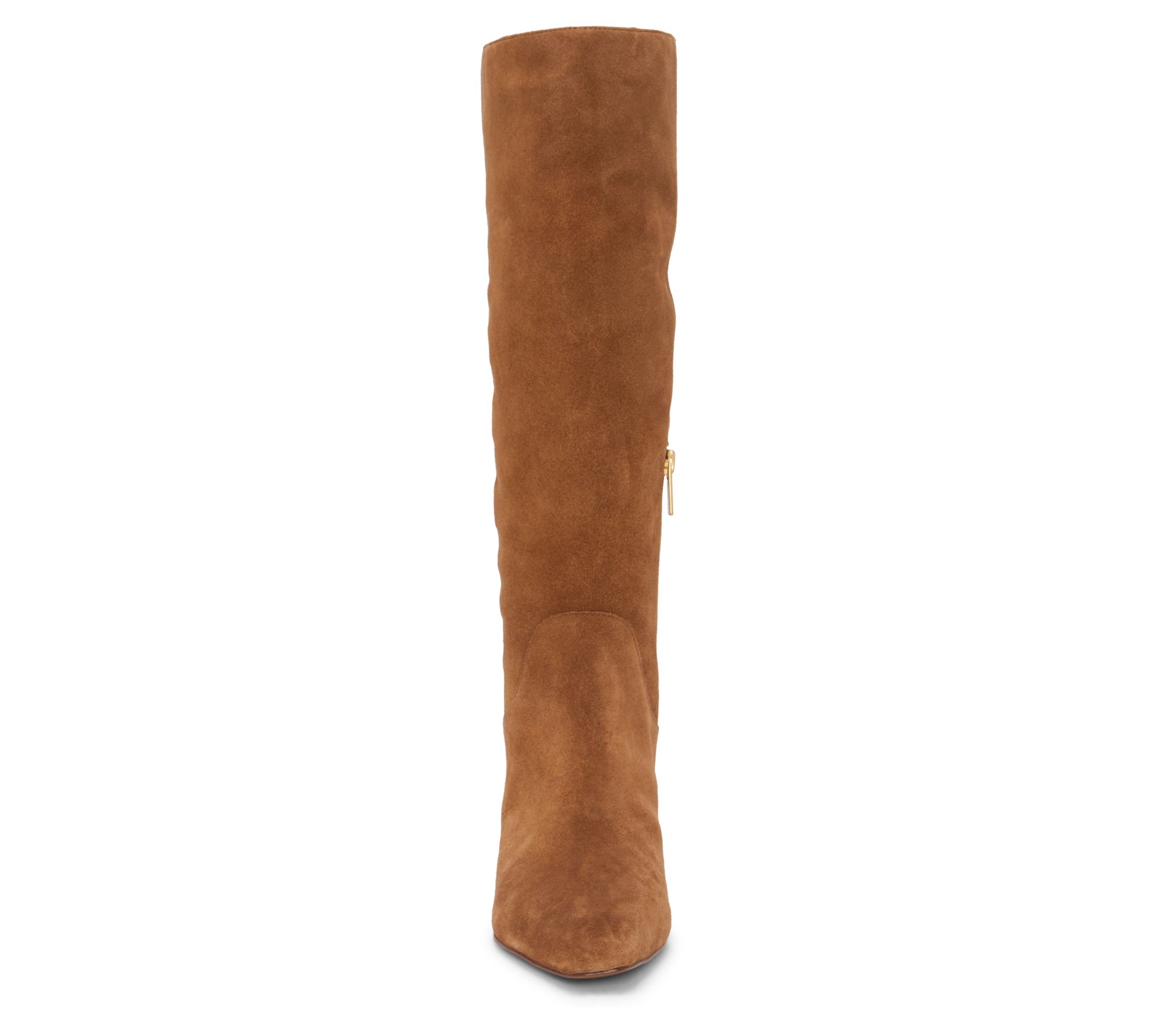 Is it possible to fall in love with a boot because of the heel? With a slim, leather-wrapped heel that's somewhere between a kitten and a block, this tall-shaft style proves it is. Pair its fashion freshness with midi skirts, maxi dresses, and leggings, and discover what more there is -- the subtle Western nod, the padding, the easy-breezy zip -- to adore! From Vince Camuto.
