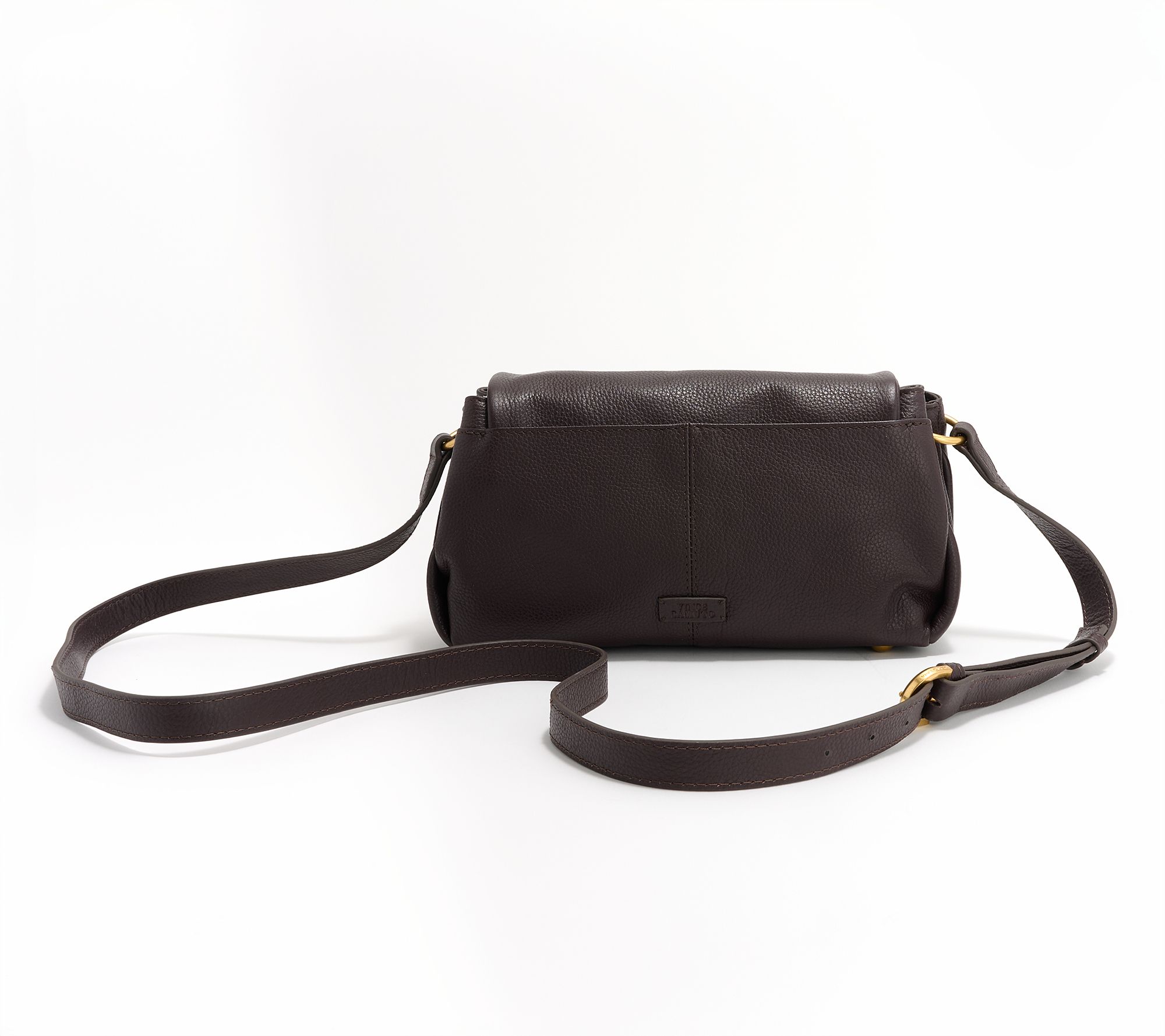 • Brass hardware, flap closure, adjustable shoulder strap, four exterior pockets