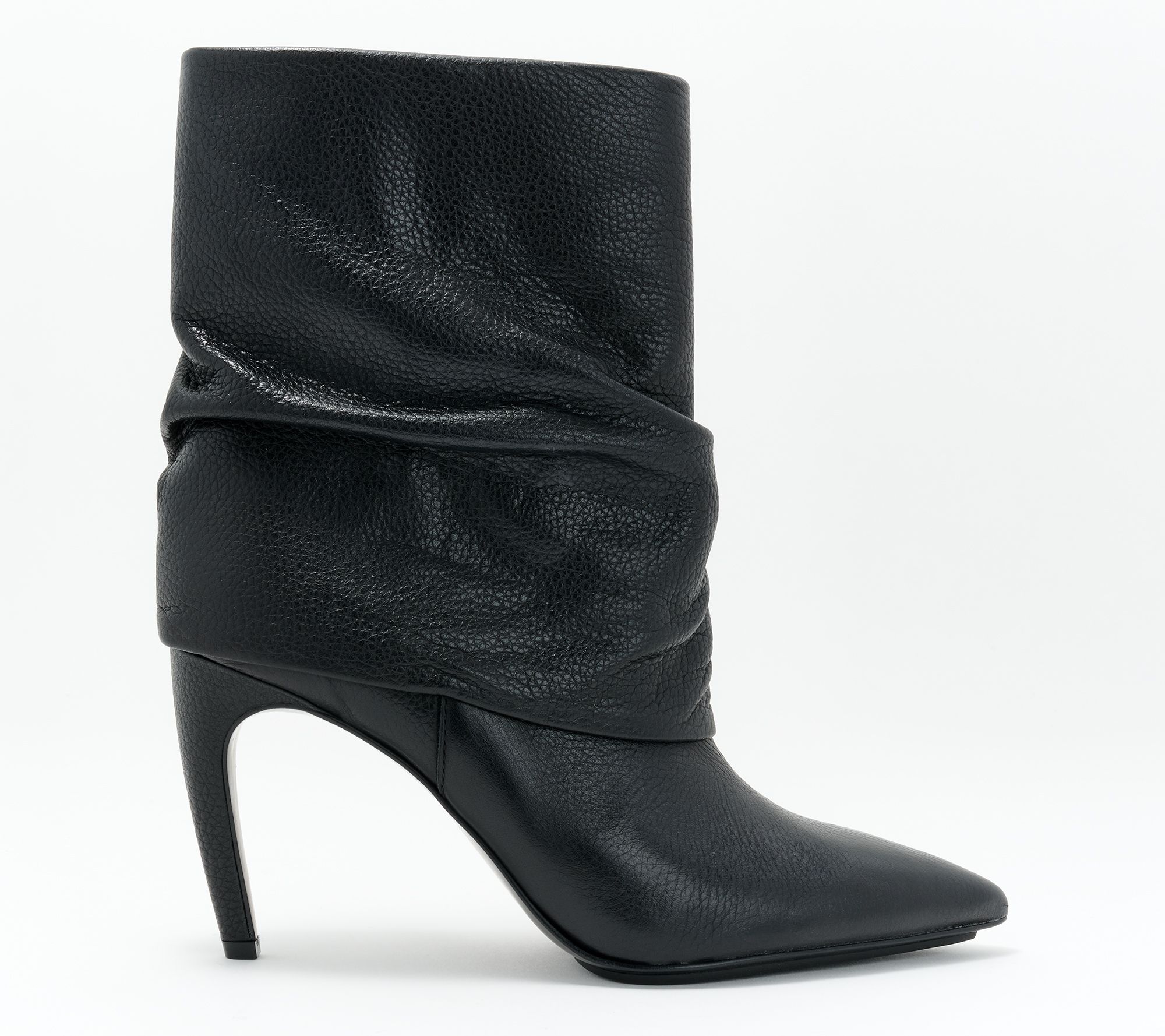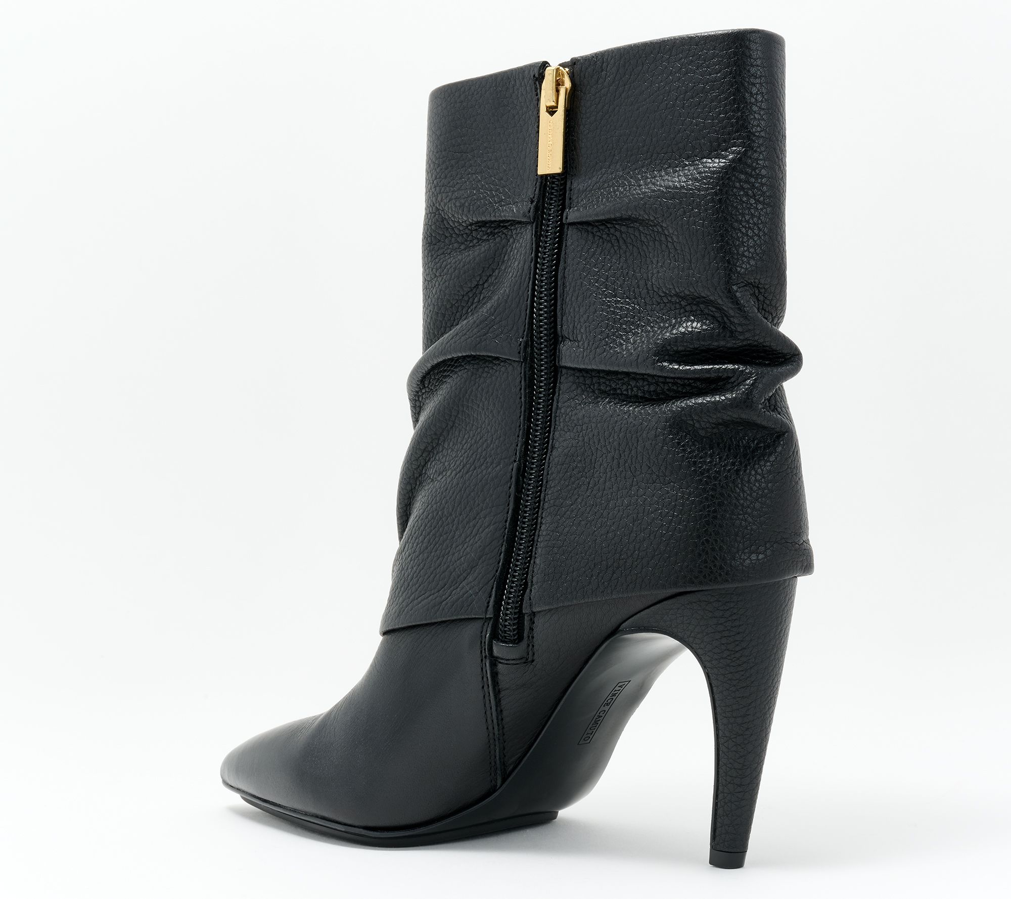 A luxe look with a laidback attitude, these leather mid shaft boots combine a slouchy style with a slim heel to create a memorable style moment. From Vince Camuto.