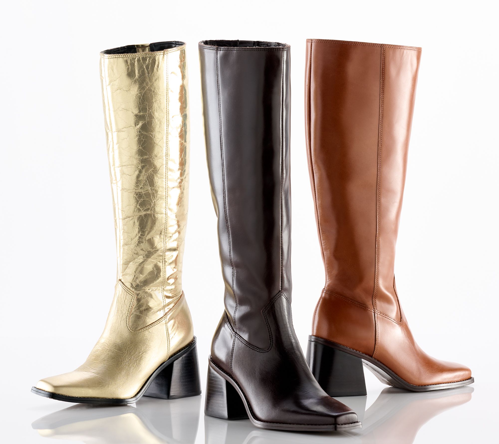 Tall with a modern square toe, the Sangeti boot dresses up leggings or a floral skirt for an elevated take on Boho style. From Vince Camuto.