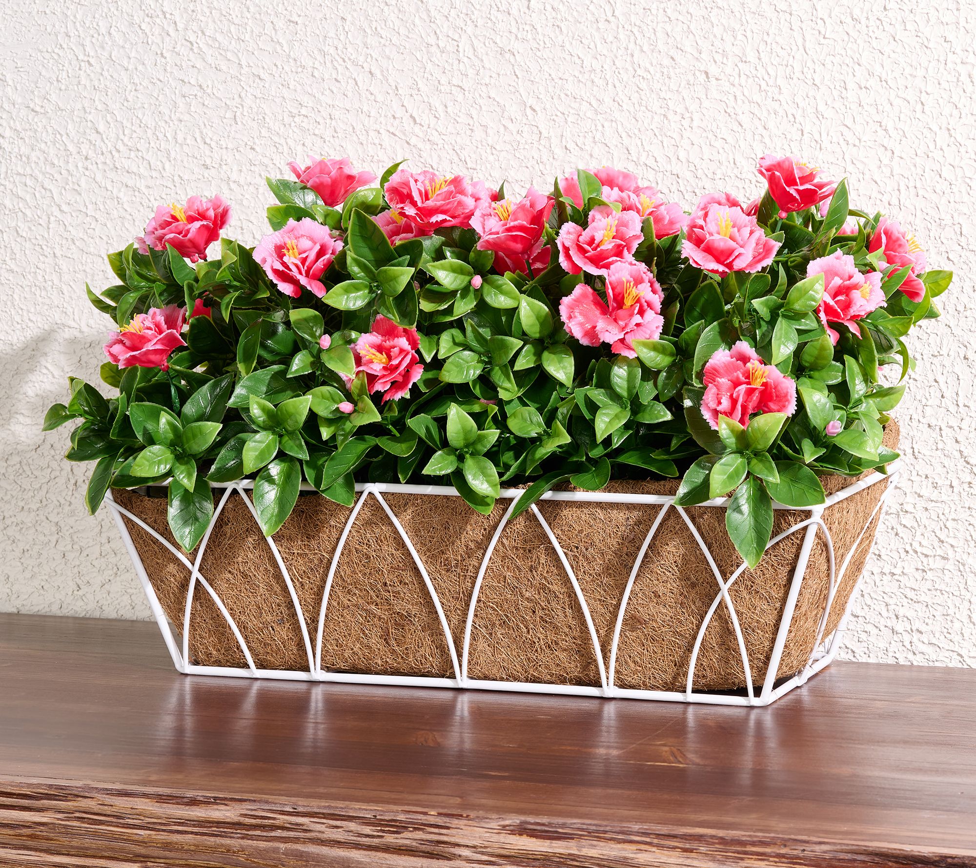 • Includes planter box, lifelike azalea blooms/greenery, coco fiber basket lining