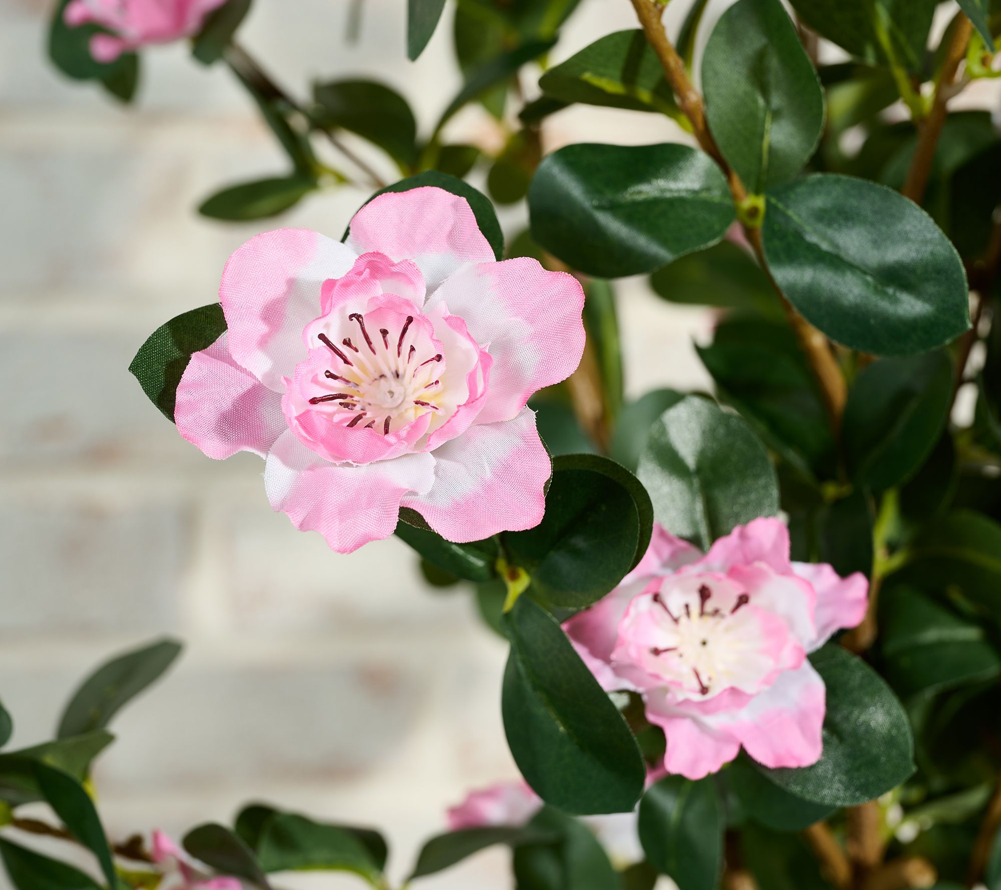 You don't have to wait for spring to get a fleeting glimpse of rhododendron flowers. This lifelike 3'H tree boasts full green foliage and bold blooms that last all year round. And it never fades, wilts, or needs water! From Wicker Park.