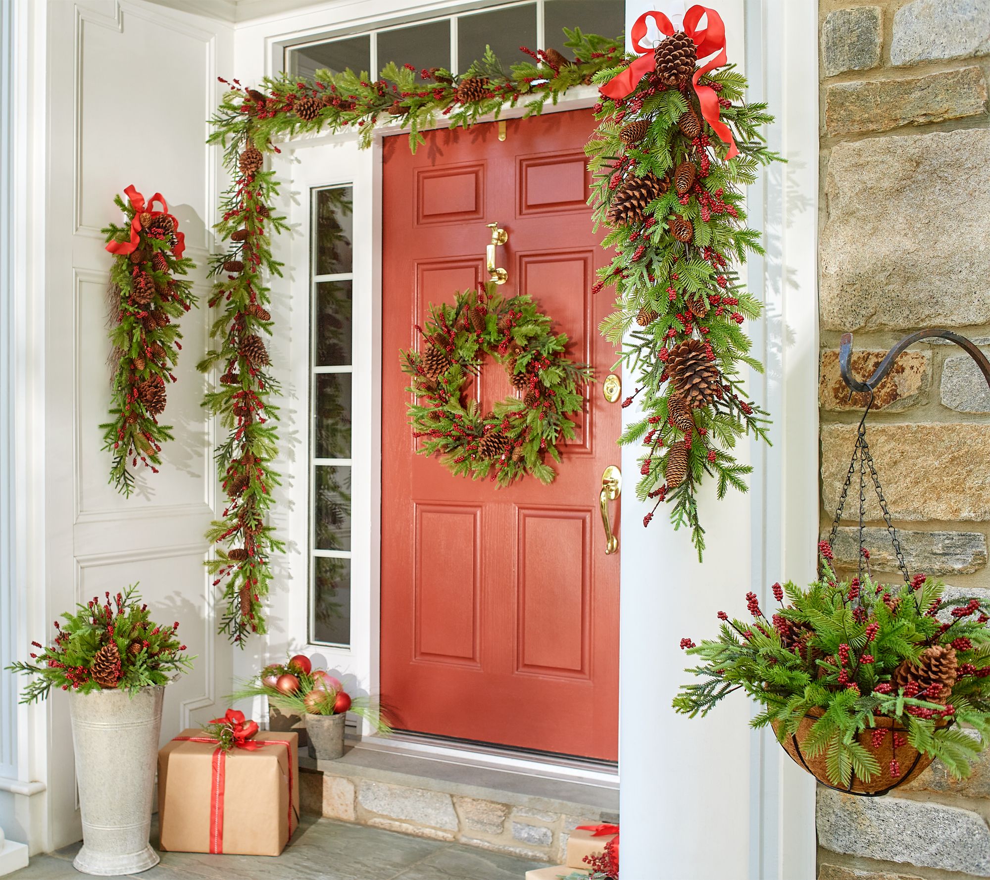 • Lifelike evergreen foliage accented with realistic pinecones and berries