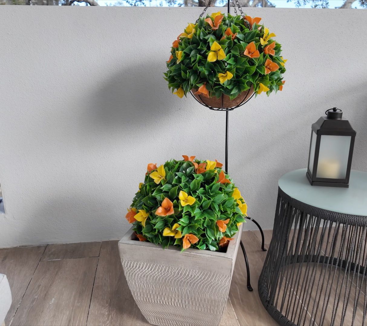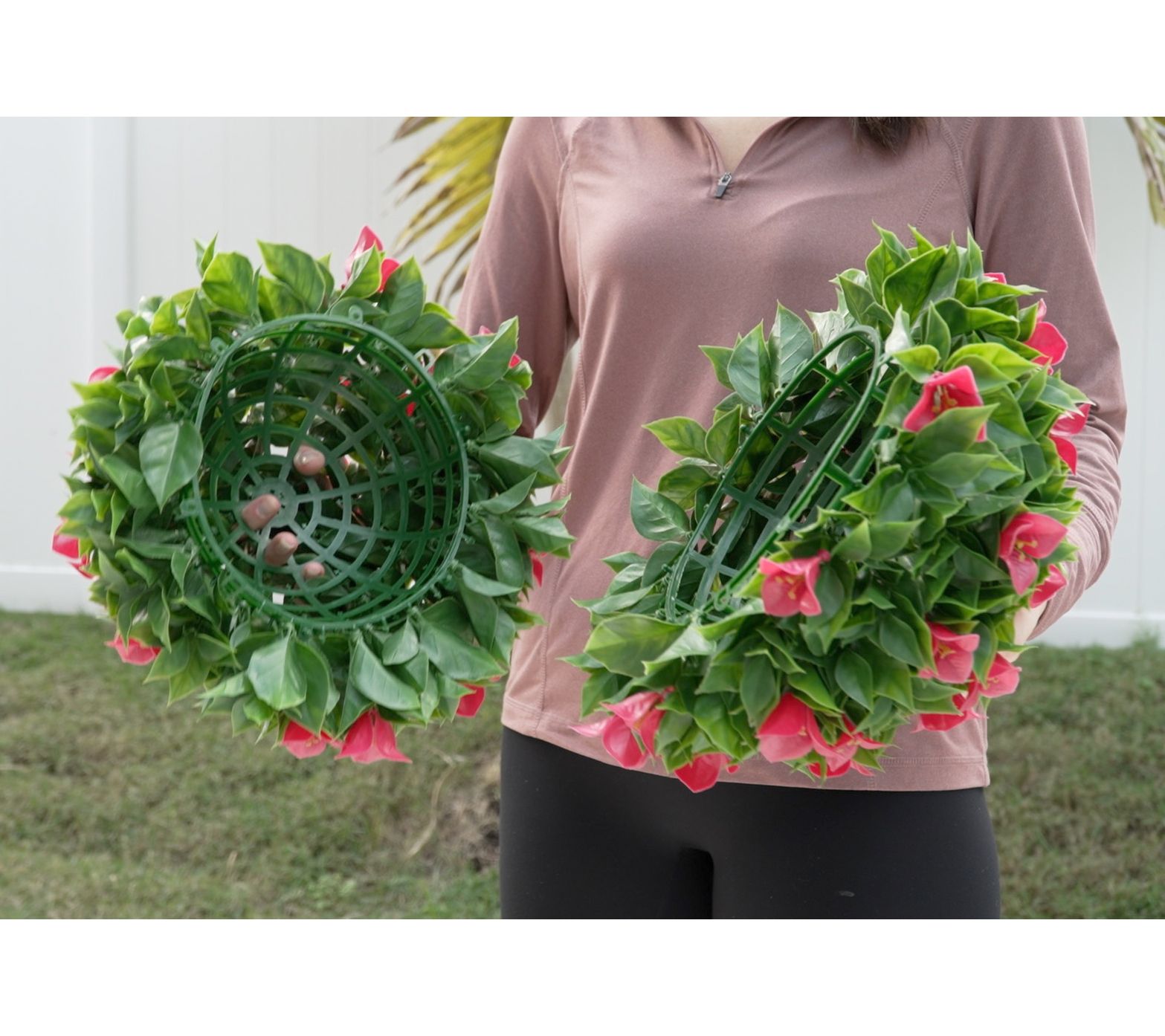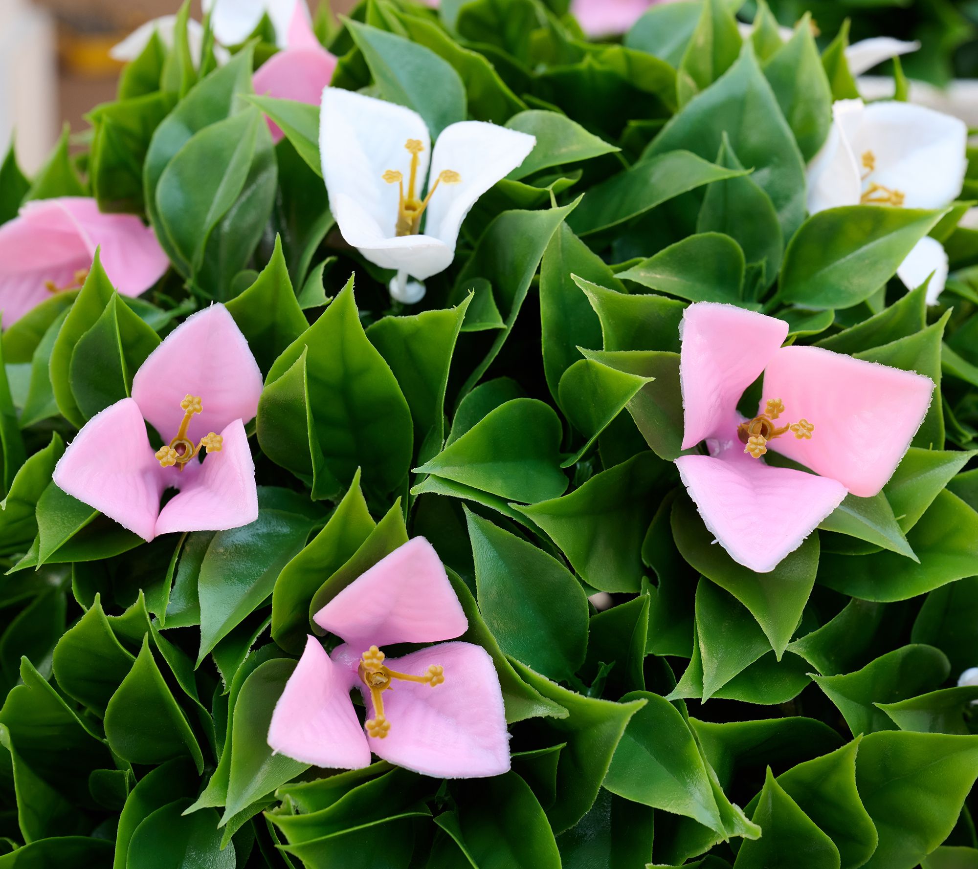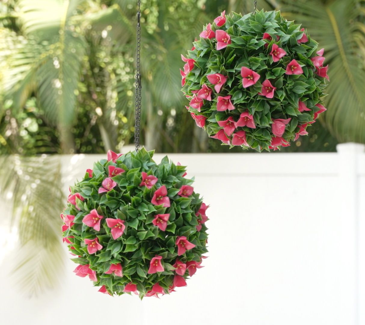 Give your garden a glow-up (no green thumb required) with this set of lifelike bougainvillea spheres. Vibrant faux blooms mixed with faux greenery bring an instant color pop to any indoor or outdoor setting.