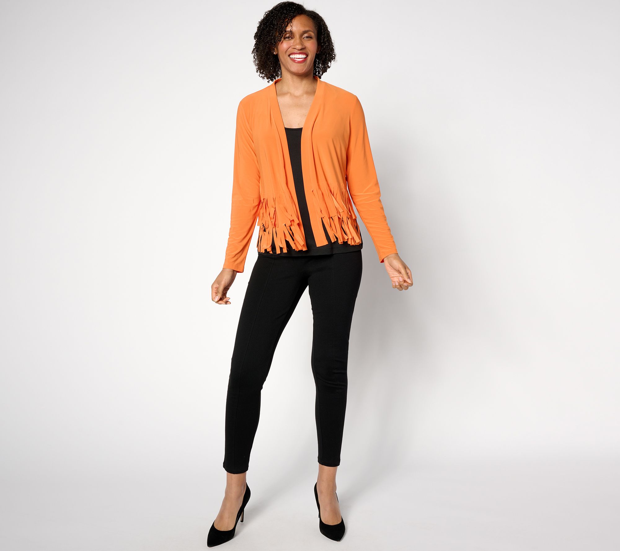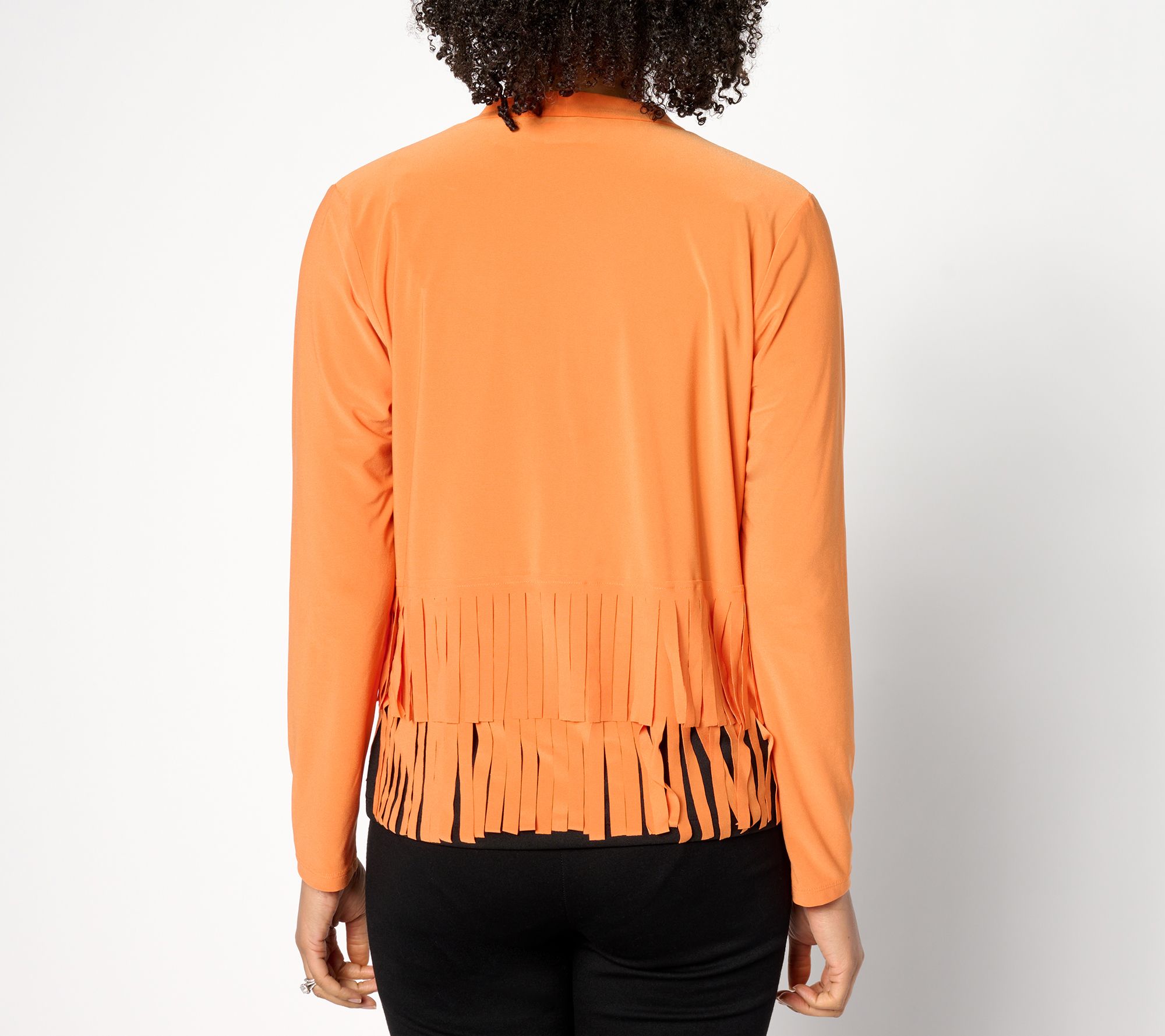 Fringe benefits! In soft and fluid Como Jersey knit, this kicked-up cardi adds interest to plain tanks and tees without adding bulk. From Women with Control®.