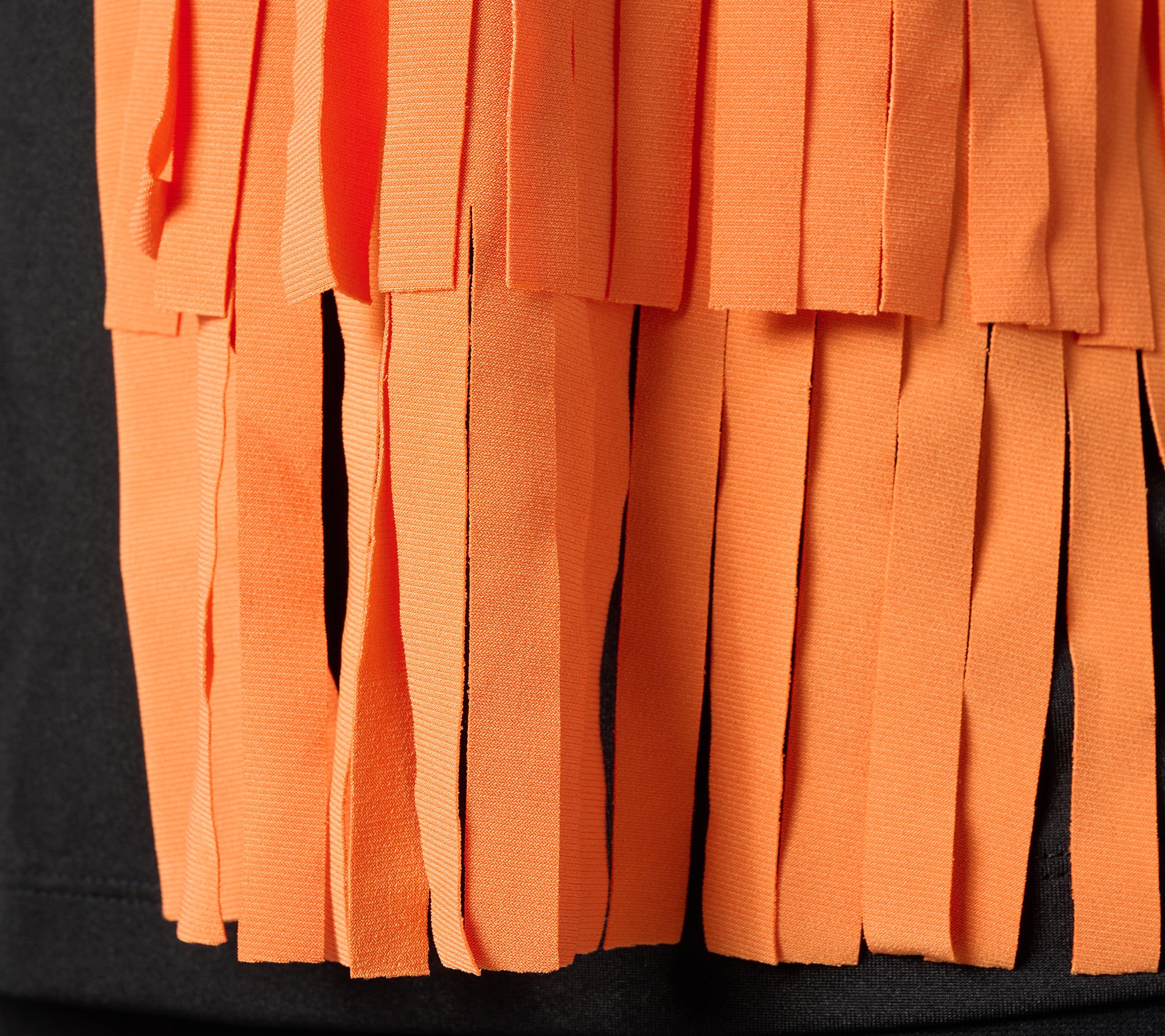 • Features: open front, slightly cropped, two-layer laser-cut fringed hem