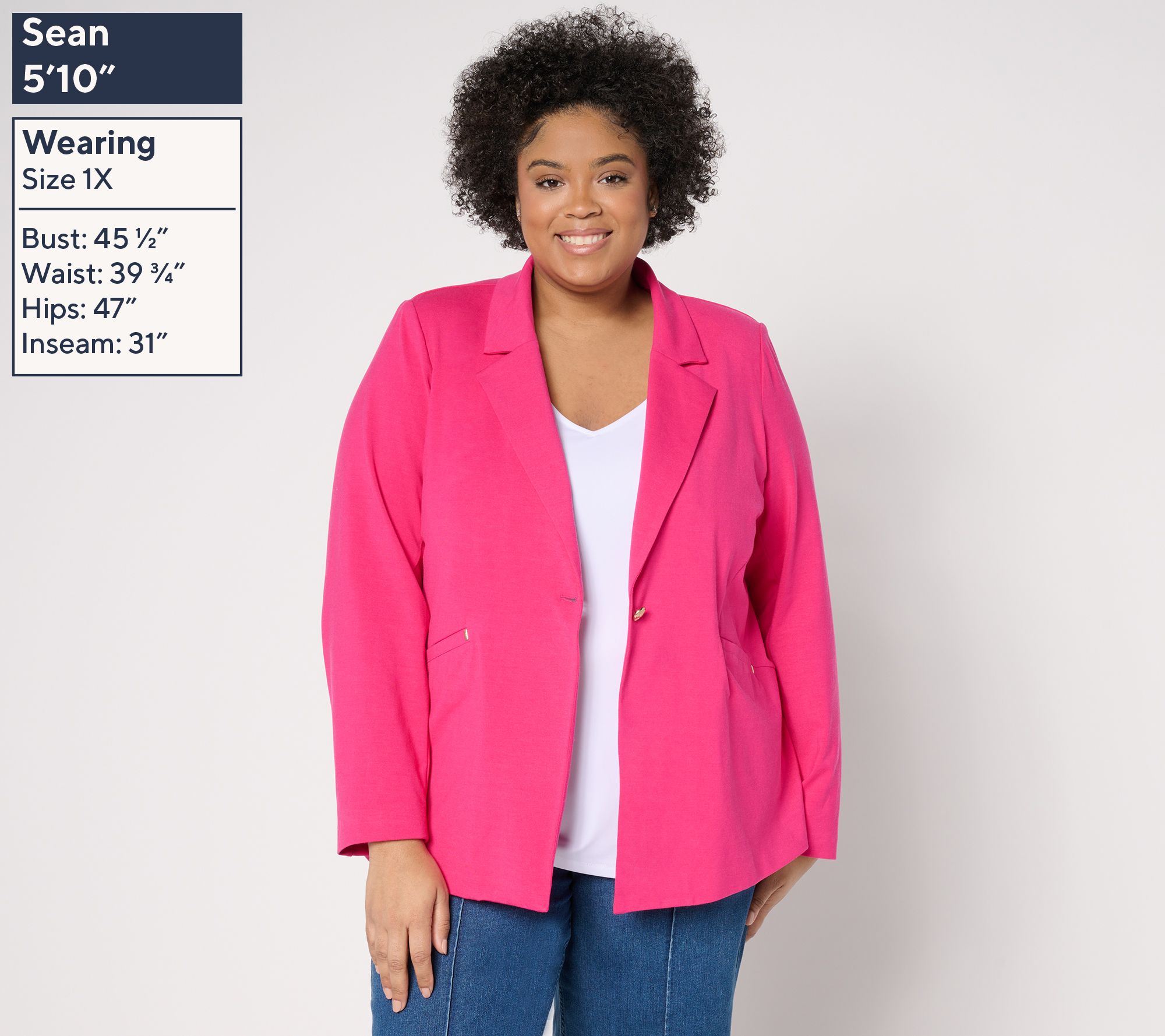When your business venture, big presentation, or reunion moment demands pro-level polish and comfort, this cotton-rich jersey blazer delivers. Pair with your favorite trousers, pencil skirt, or denim and take care of business (or pleasure)! From Women with Control®.