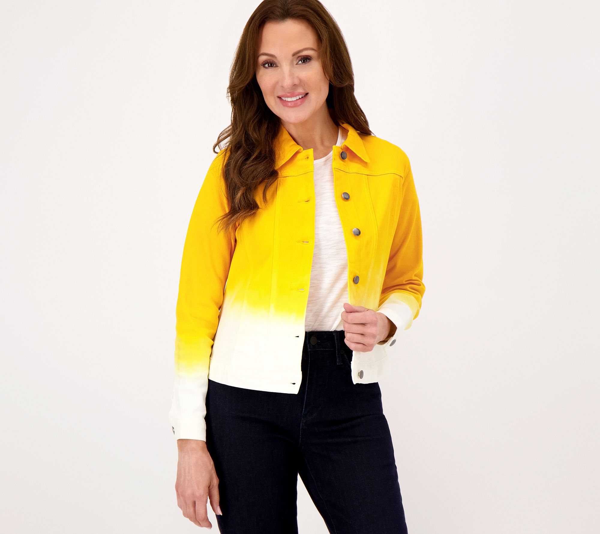 Denim jacket: but make it dip-dye different. Throw this adorable outfit-maker over V-neck tees, silky bodysuits, or flowy little dresses -- it's your new wardrobe staple! From Women with Control®.