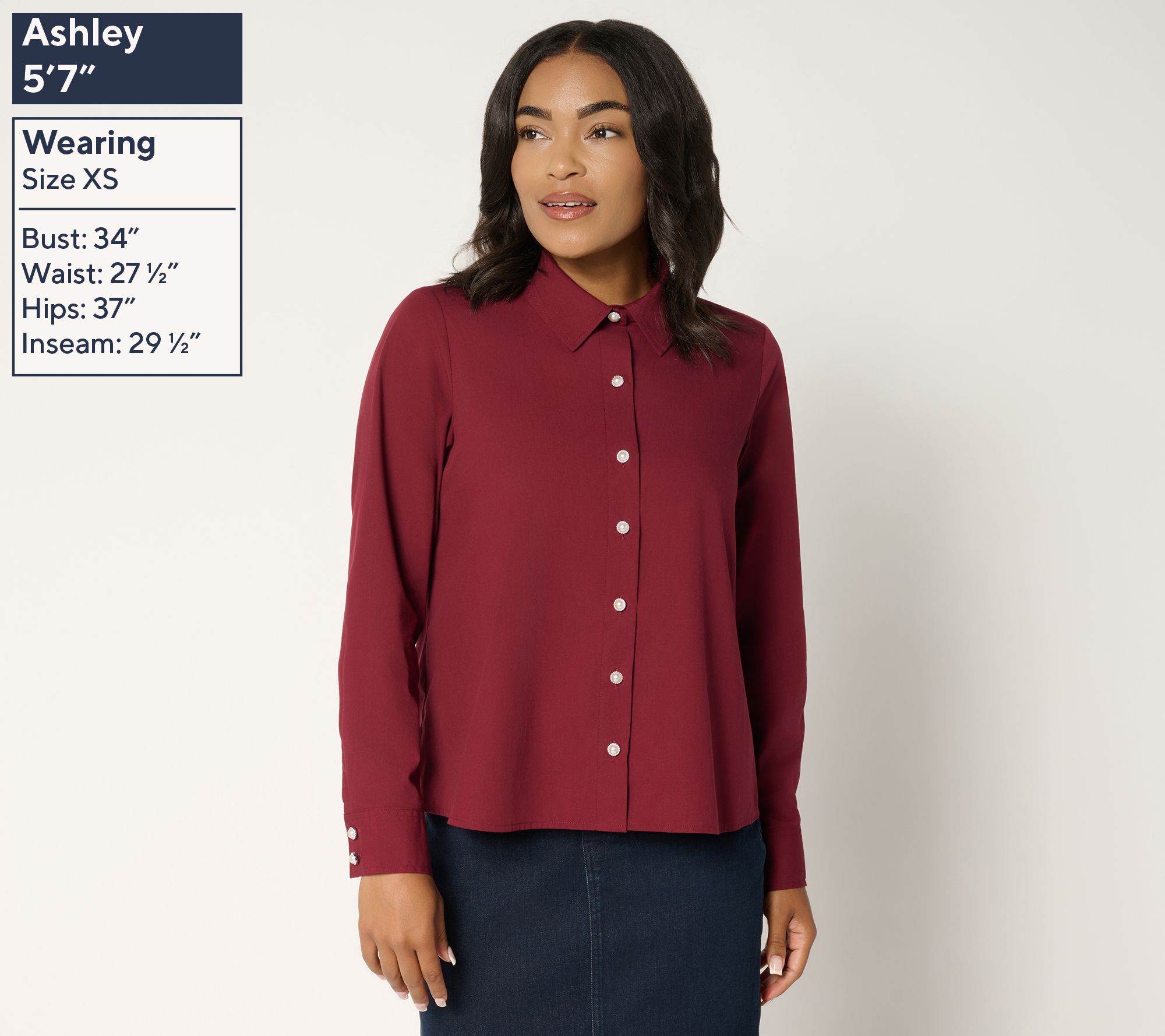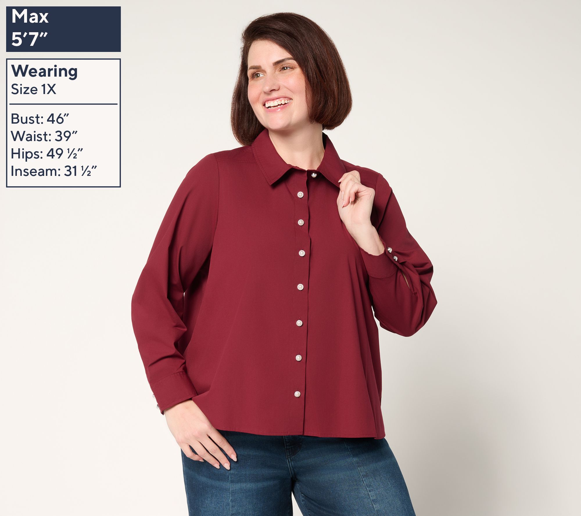 "As Is" Women with Control Pearl Button Down Top