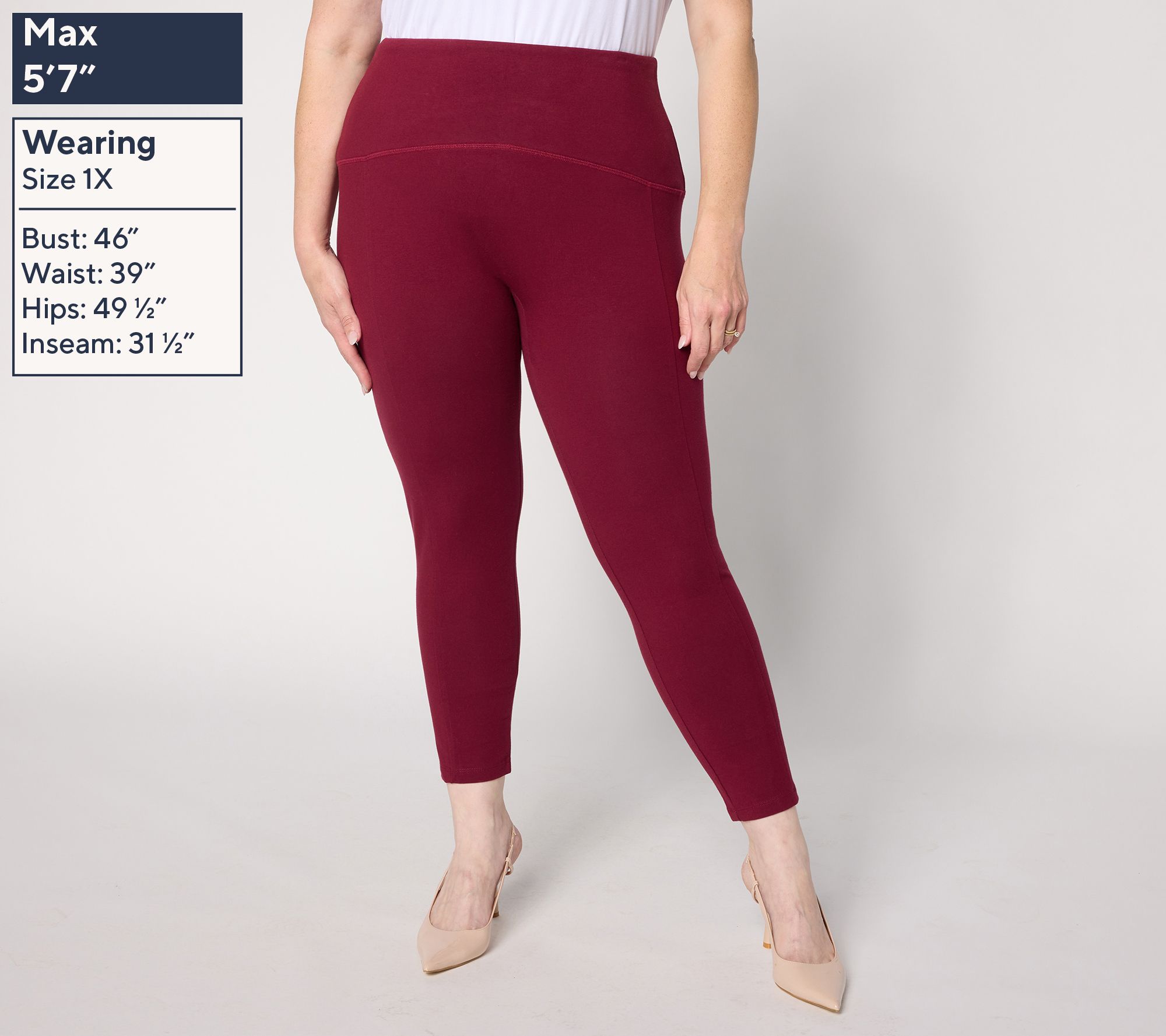 • Features: Tummy Control with Blu-Tec Control SystemTM: Tummy Control waistband lined with Blu-Tec Control SystemTM mesh for smoothing and support without the need for a shaper or compression garment, booty lifter waistband, side panel, no outseam, ankle length