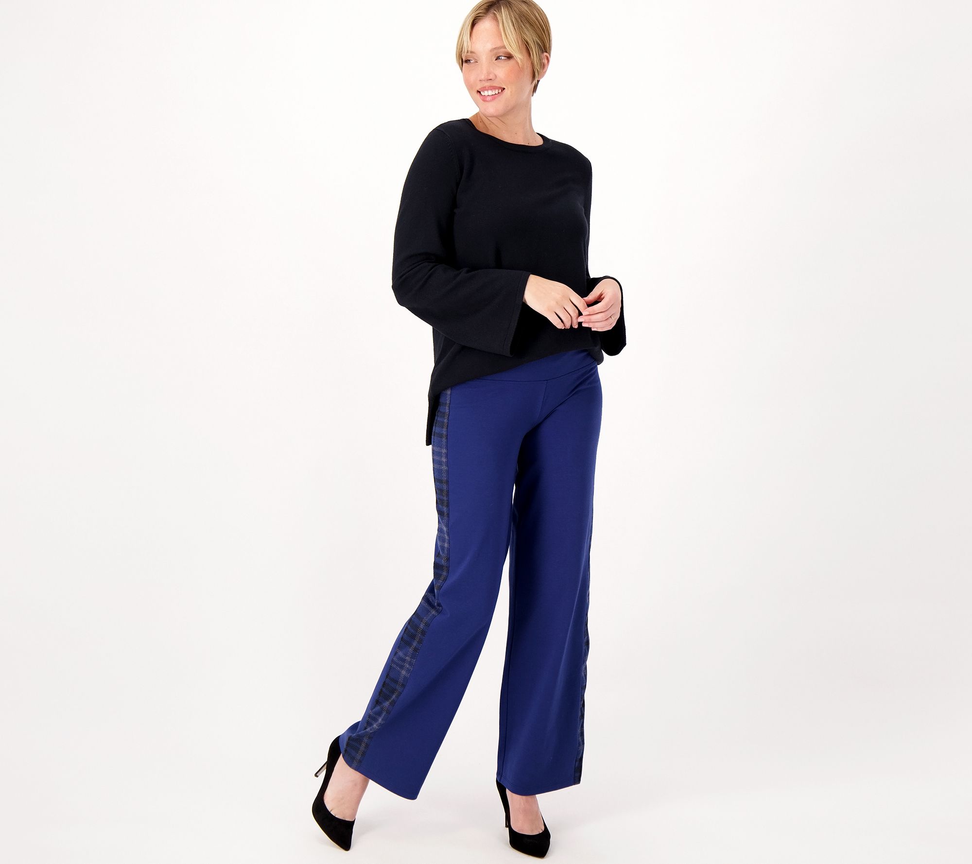 "As Is" Women with Control Petite Cotton Jersey Wide Leg Tuxedo Pant