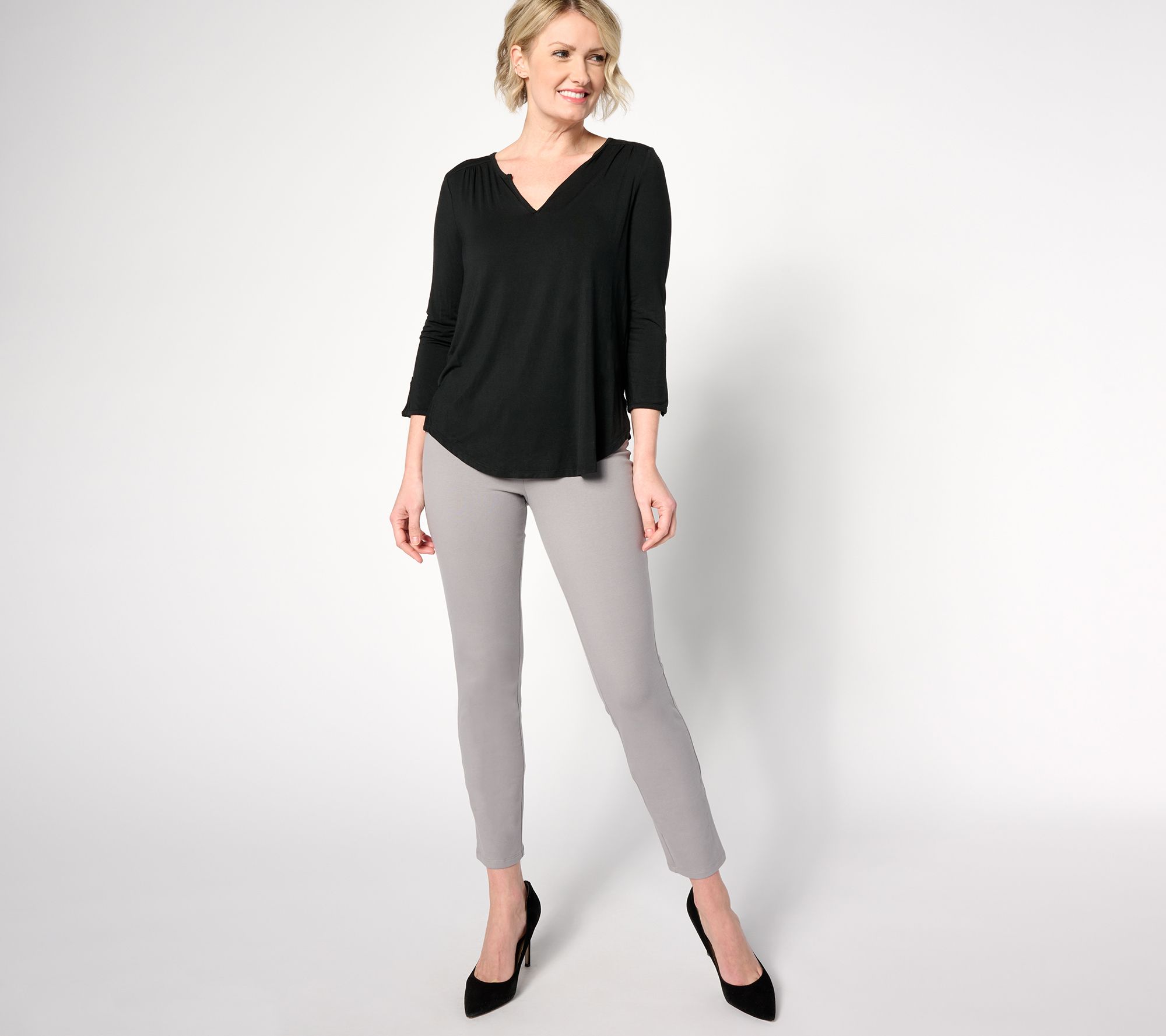 A must in your multi-season wardrobe, these knit slim pants are the pair you'll put on to work the room or spend time with the fam. A flat front waistband imparts confidence to tuck your top or pair with a cropped jacket. From Women with Control®.