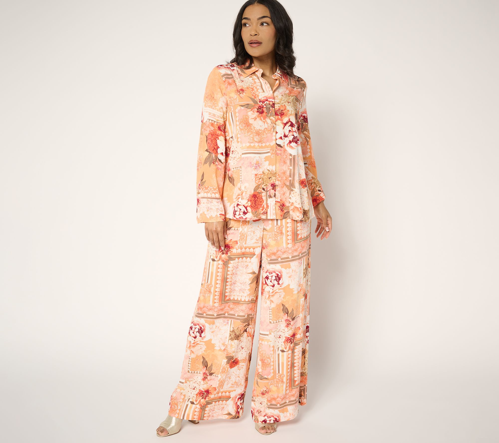 Billowy and so beautiful, these patterned palazzo pants are just what your closet is calling for. Flatteringly flaring from the waistline to the hemline, these wide-leg picks, crafted in a silky blend, perform wonderfully as office wear -- and just as easily as evening wear. When your schedule demands sophistication but your mental mantra craves comfort, these easy-to-style trousers are the perfect fit. From Women with Control®.