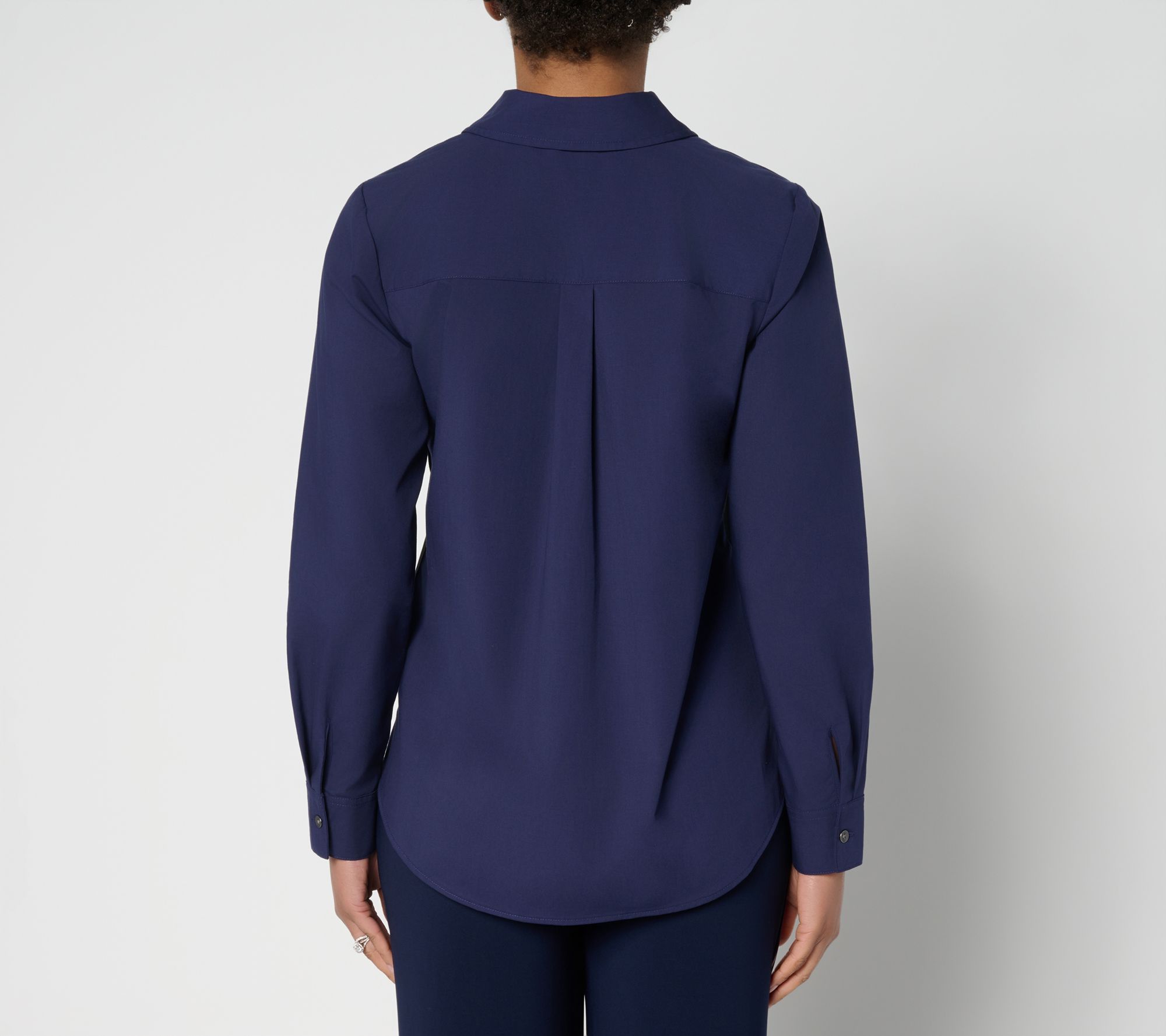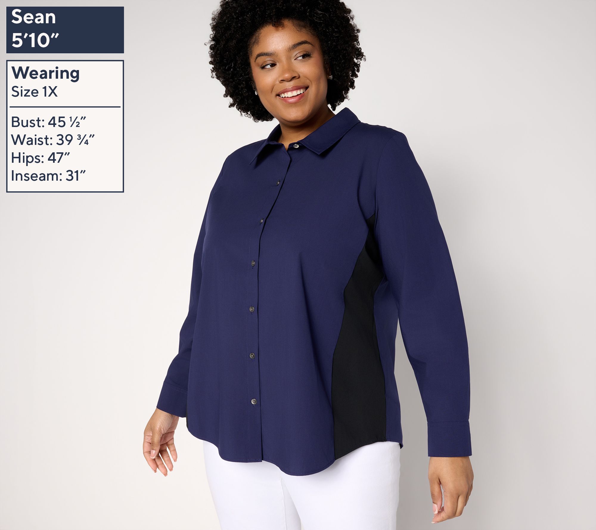 Looking for that just-right balance of fresh and tailored? This color blocked poplin shirt has you covered for both office hours and casual weekends, thanks to subtle contrast seaming and stretchy yet structured fabrication. Wear it buttoned up for work or layer it over a tee when you're off duty. From Women with Control®.