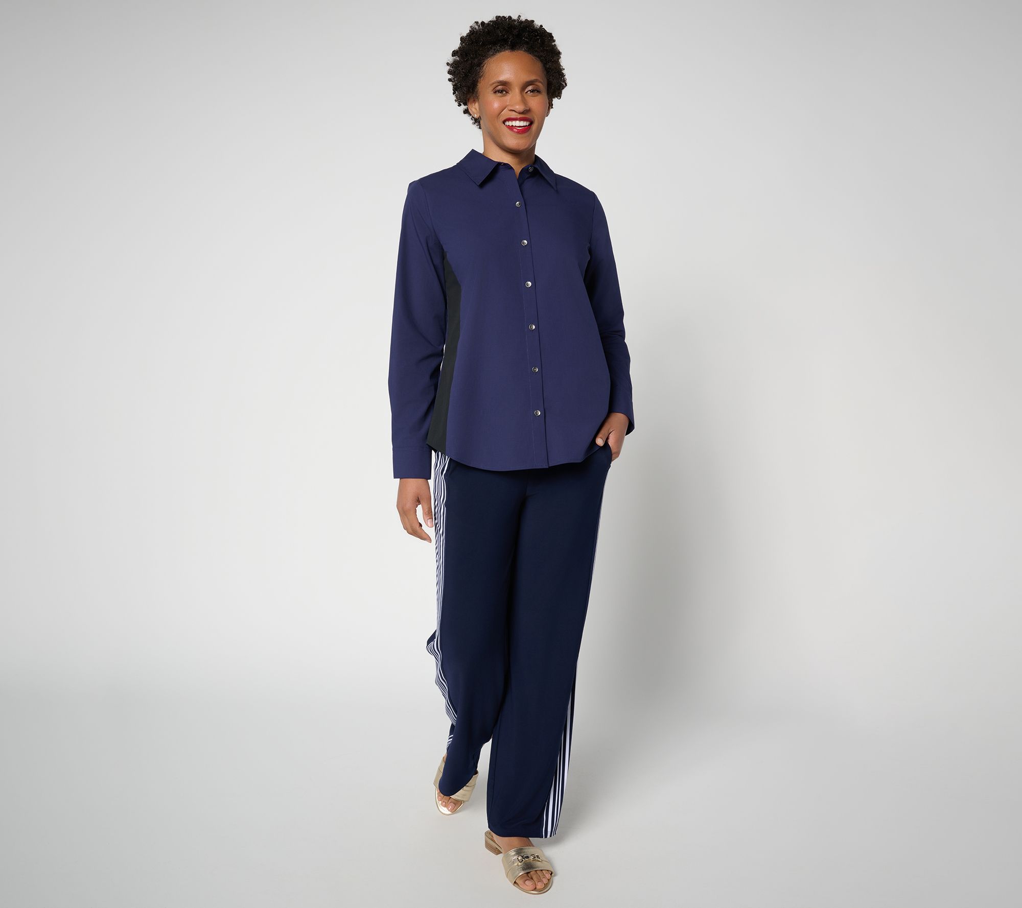 "As Is" Women with Control Poplin Button Shirt w/ Color Block