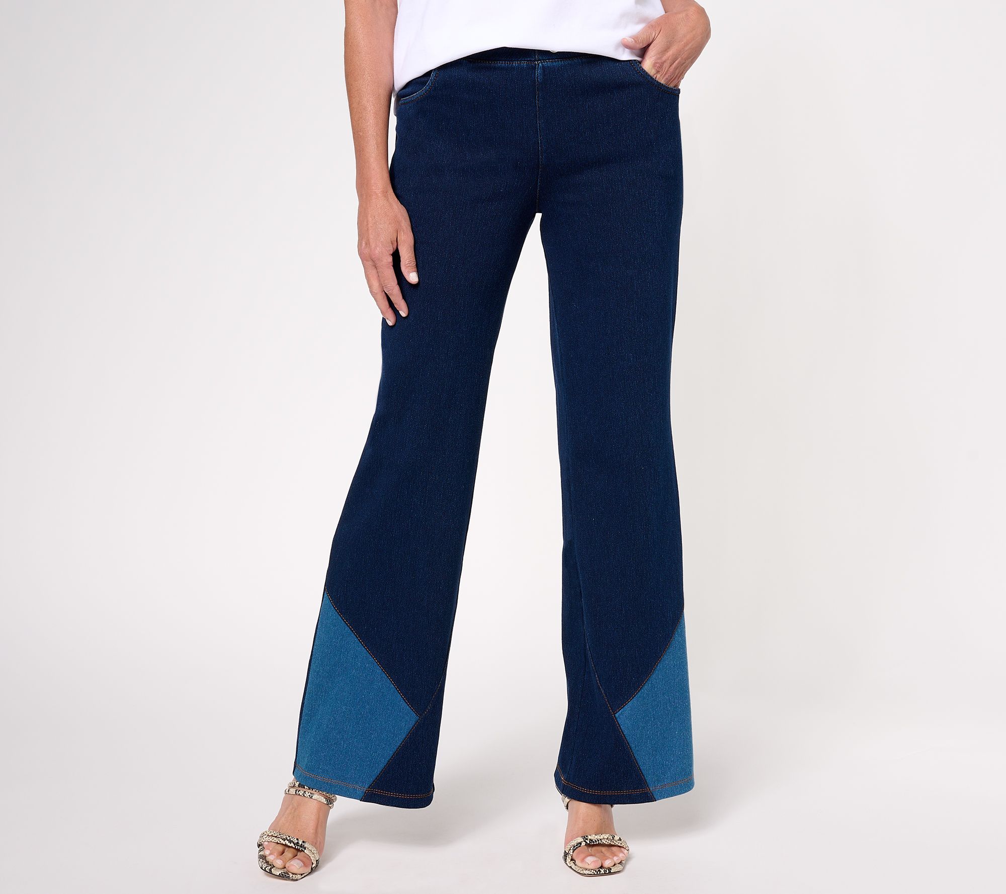 The look of denim with the feel of a knit? That's enough reason to own these Prime Stretch Denim pants. Oh, but there's so much more. The contrast panel at the hem adds trend-right freshness, plus they've got Tummy Control for a flattering fit. Yep, this is your add-to-cart moment. From Women with Control®.